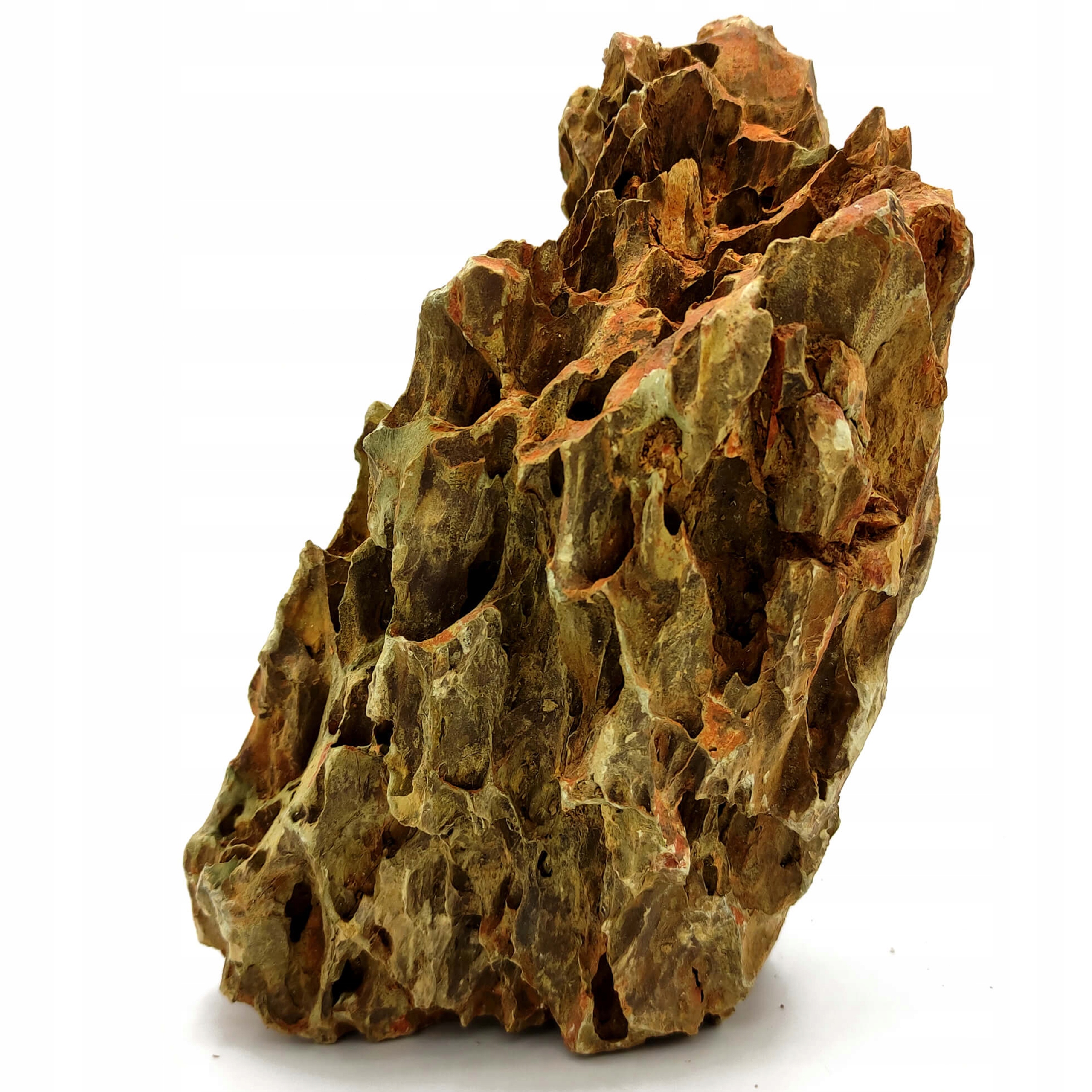 Зелено-коричневого цвета, текстура которого напоминает кожу рептилии. На поверхности имеется большое количество отверстий и отверстий. Для использования в пресноводных аквариумах, вивариях и террариумах.
