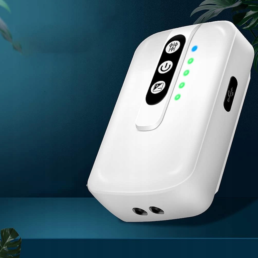 2 Вт, максимальный поток воздуха 3 л/мин х 2, емкость батареи 2000 мАч. Двойной воздушный выход, подходящий для 30-100 л аквариума.