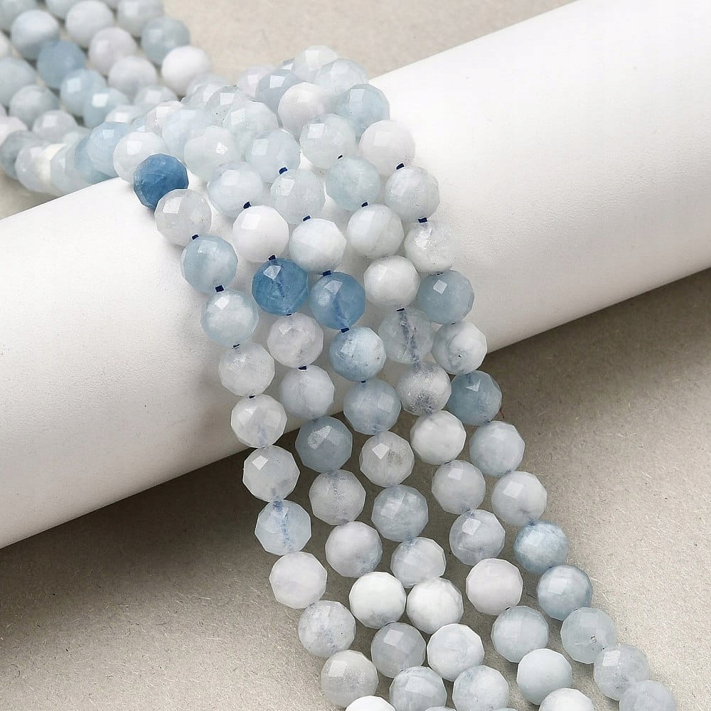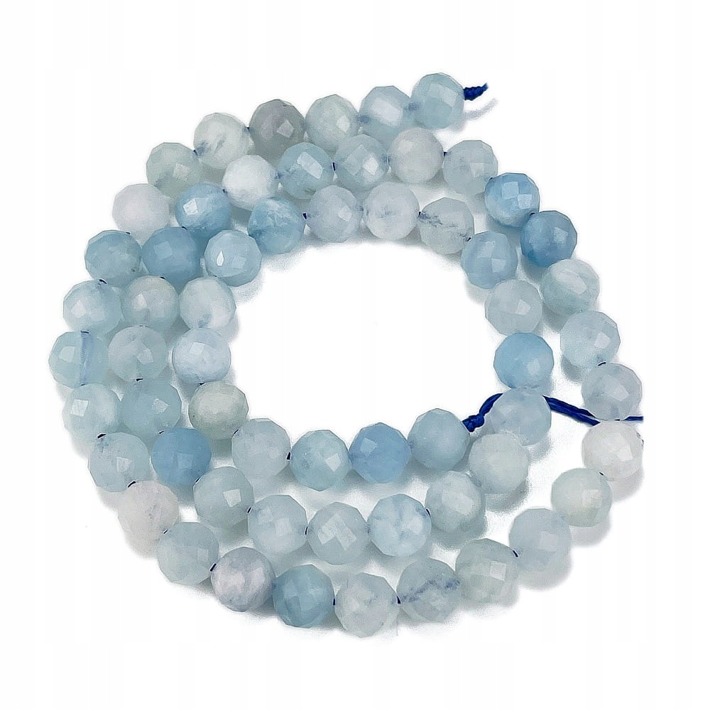 AKW04 Бусины гранёные шарики Аквамарин натуральный камень шарики 6мм нитка 60шт