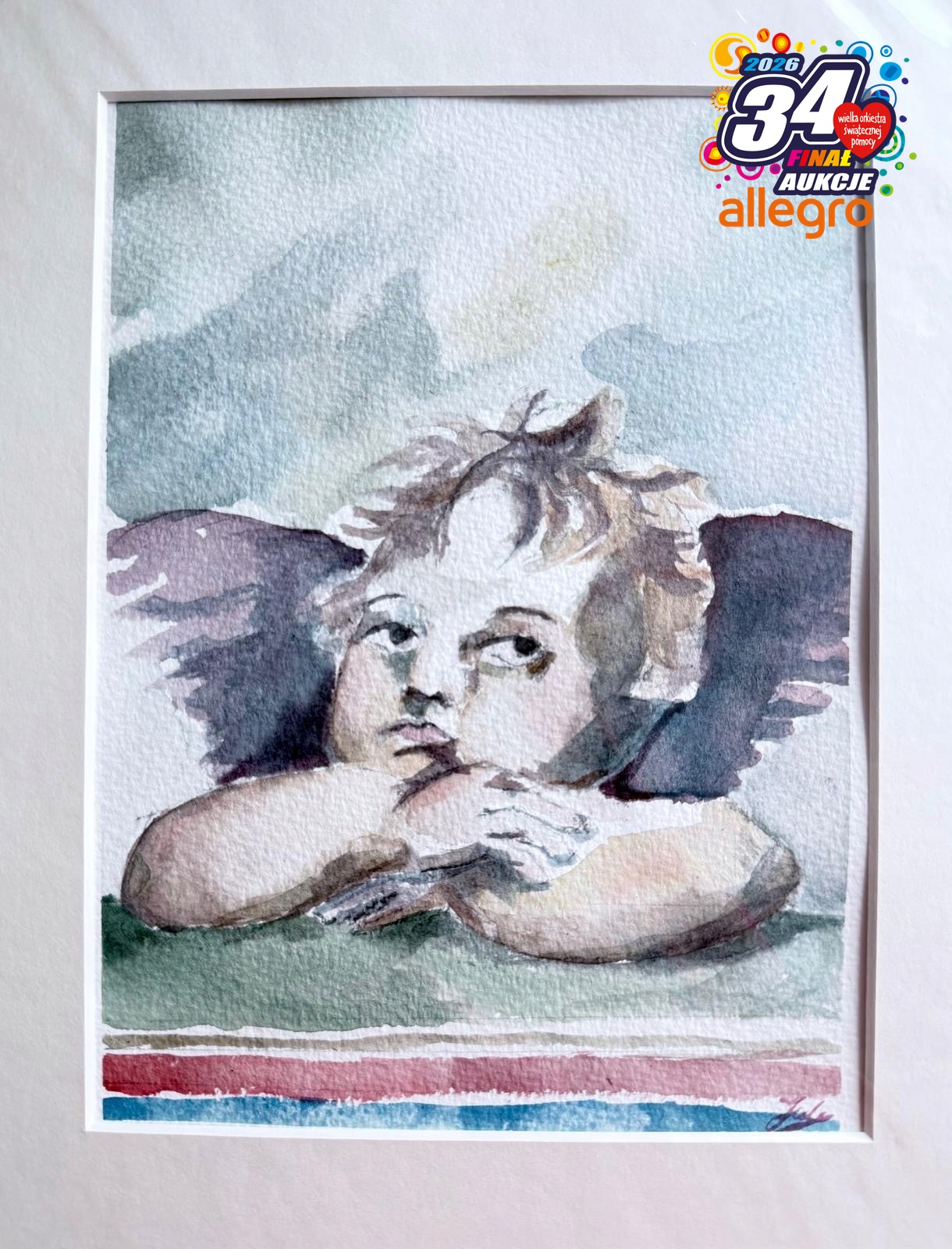 Ангел акварельный, размер 28х35 см, в рамке паспарту.