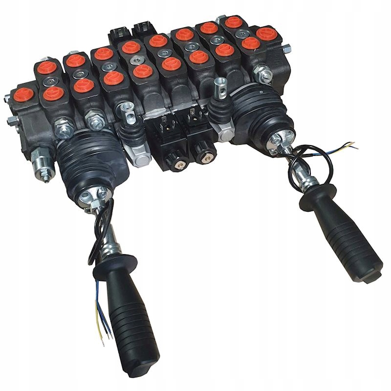 8-секционный распределитель АЛ-РС8 В стандартной комплектации для лесных прицепов амортизаторы на третьей секции отсутствуют, а в этой конфигурации амортизаторы будут установлены на 1-й, 2-й и 8-й секциях. Клапаны регулируются. Расход: 90 л/мин. Максимальное давление: 315 бар. Порт T: ¾ дюйма, порты P, A и B: ½ дюйма. Да, на ручке будут две кнопки.