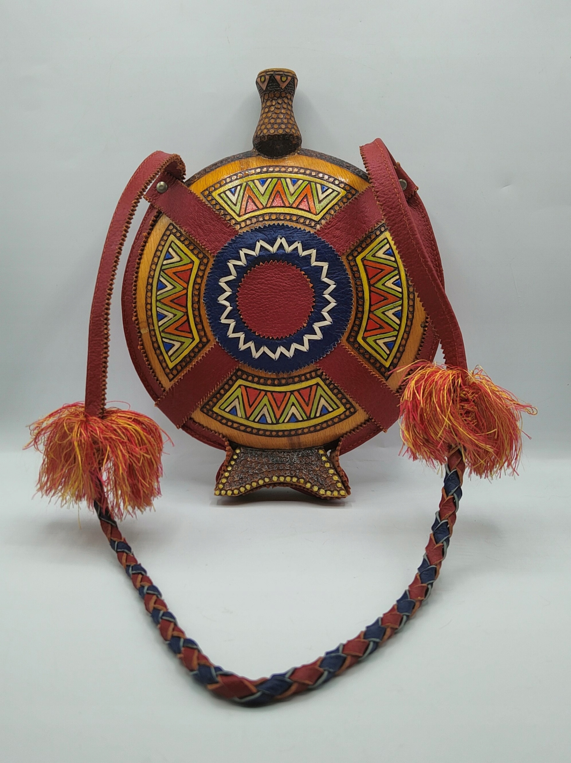 АЛБАНИЯ потрясающая СТАРАЯ БУТЫЛКА из дерева и КОЖИ 28 см.