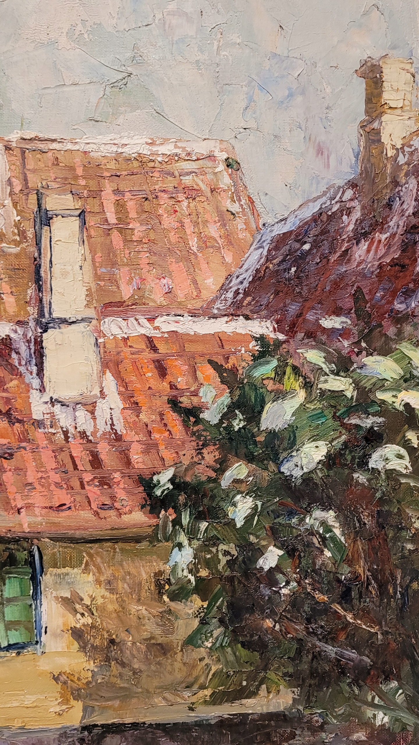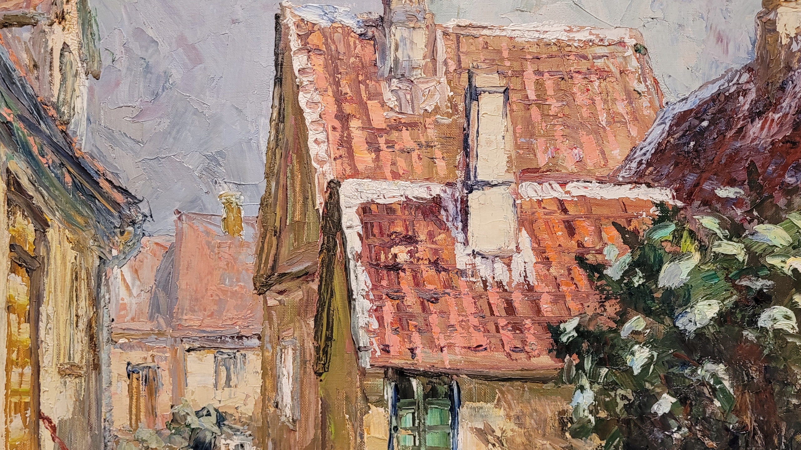 Тема продажи - красивая старая нефтяная картина "Старая улица".
