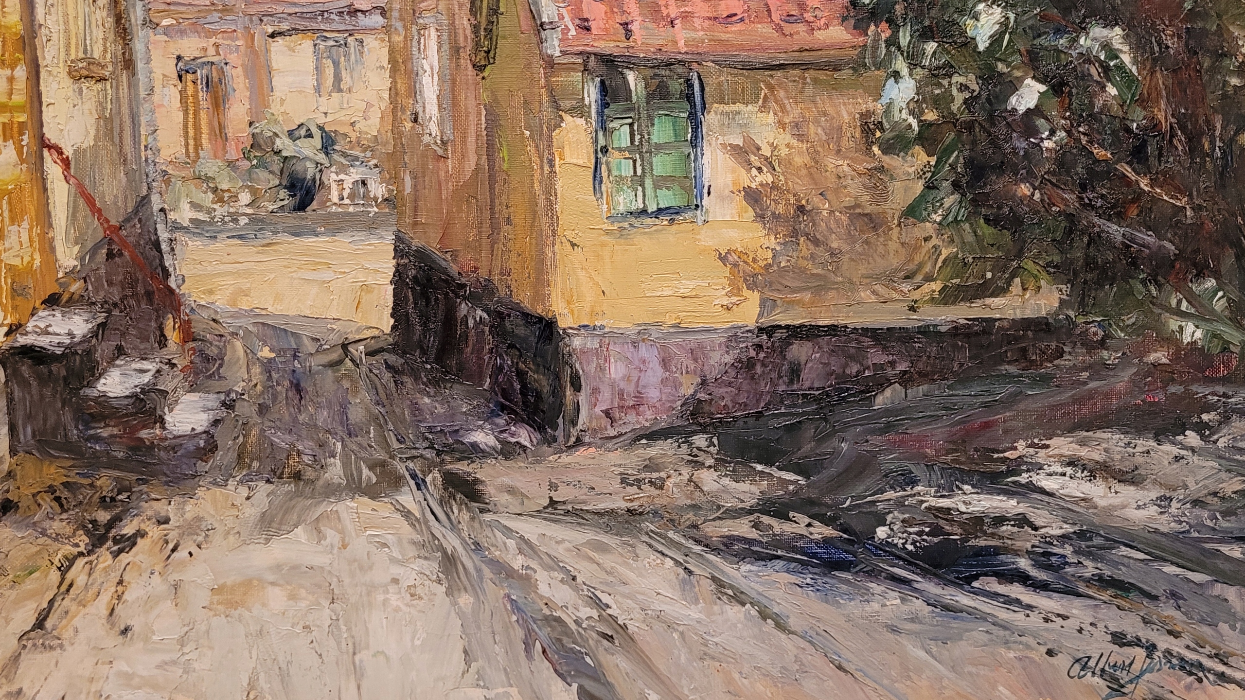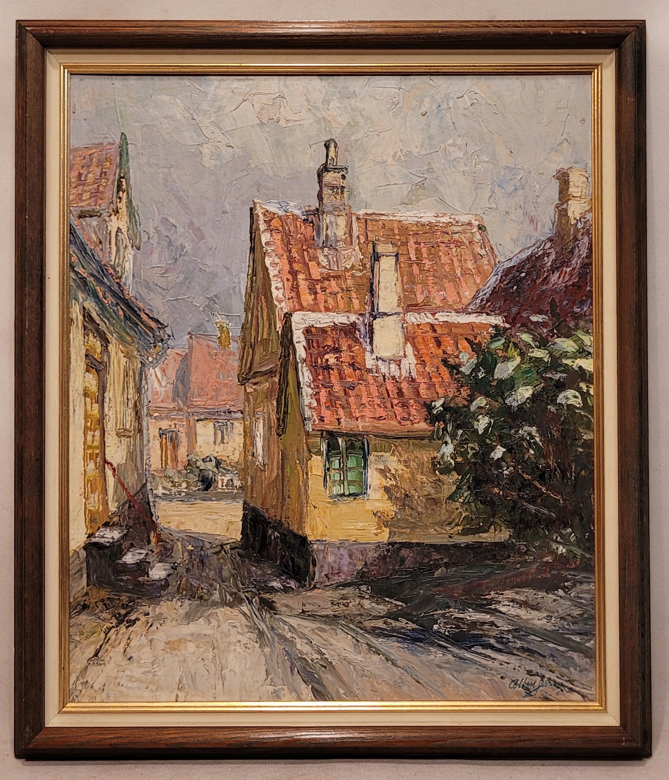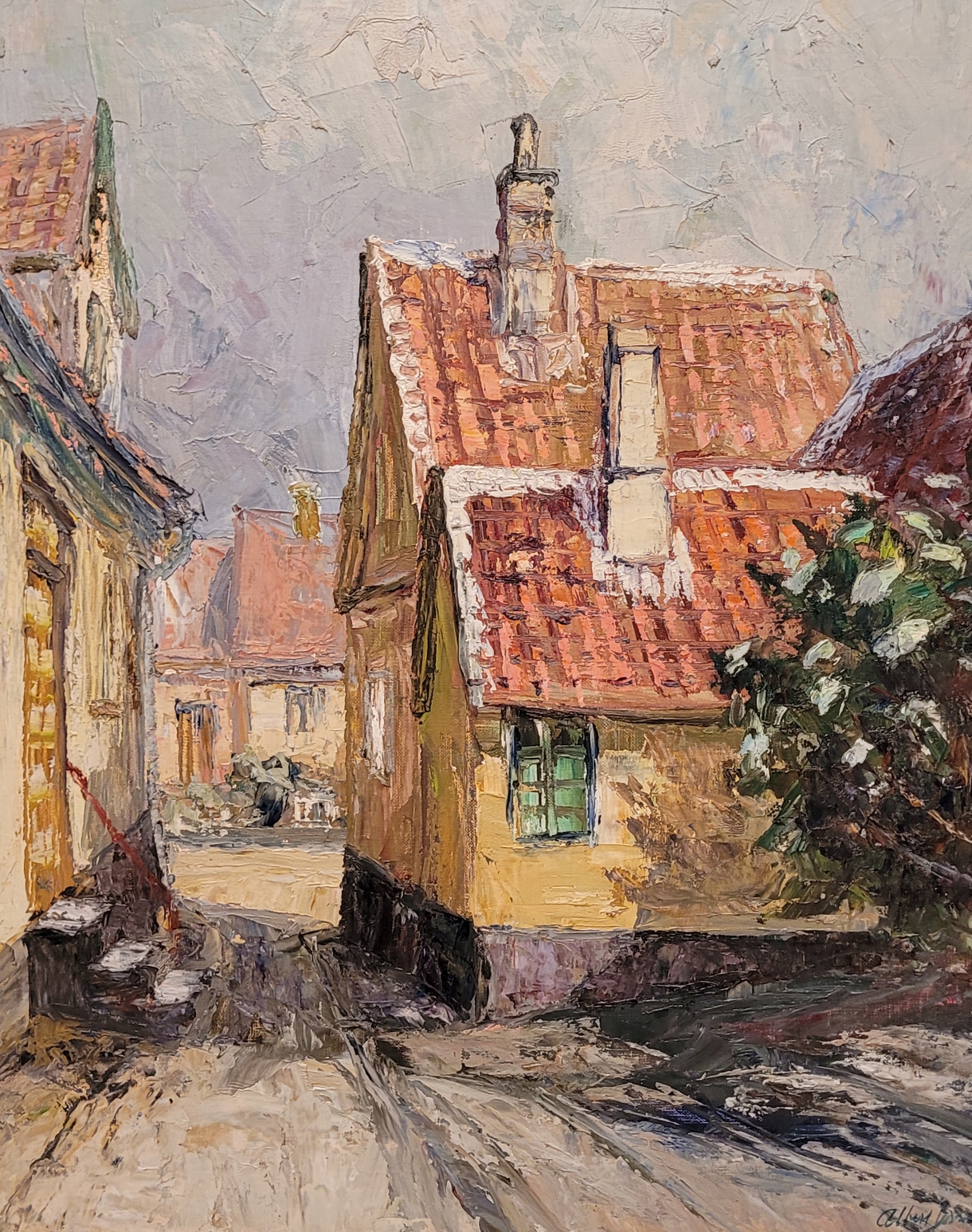 Альберт Дженсен - «Старая улица», красивая нефтяная картина.