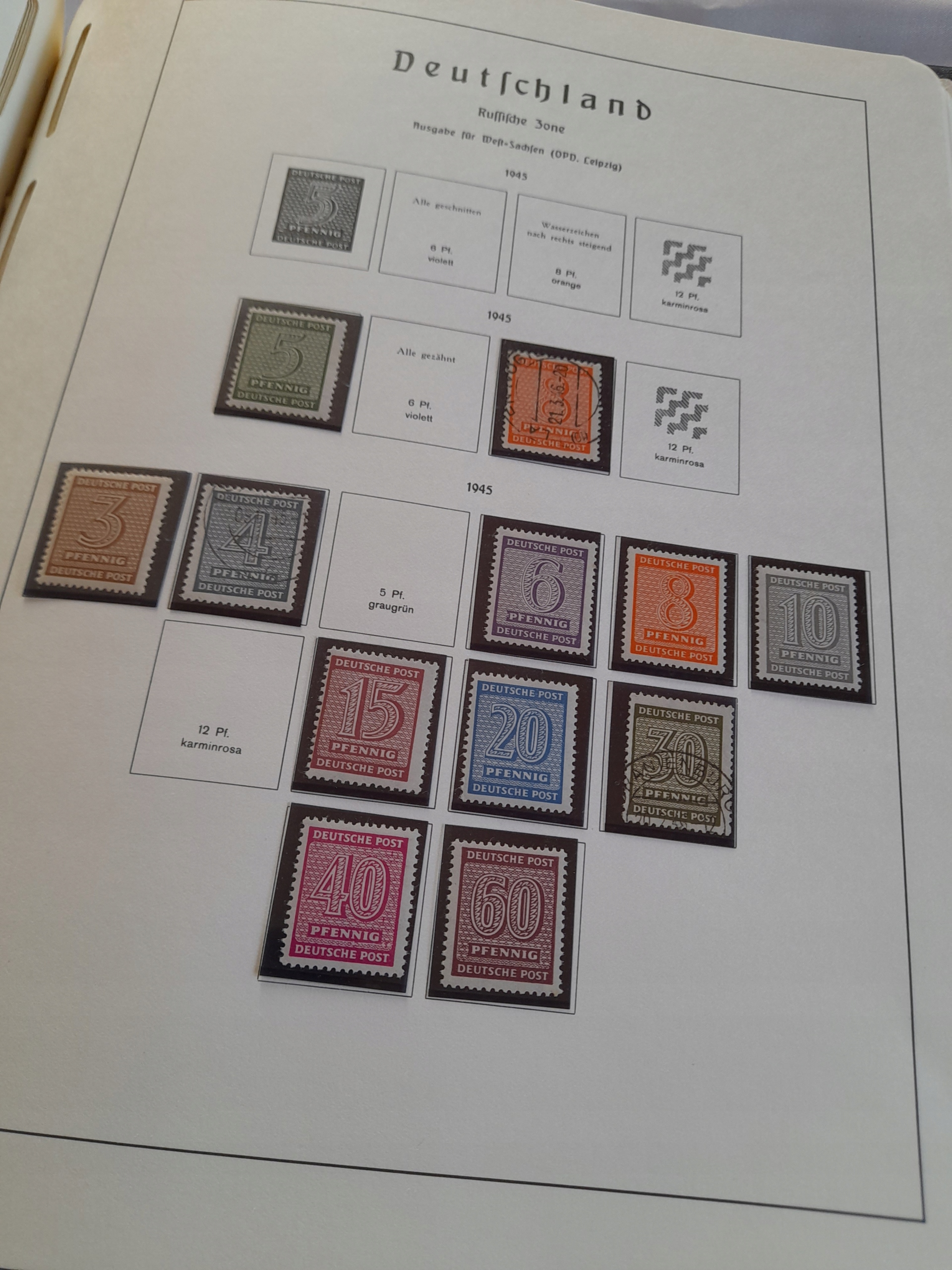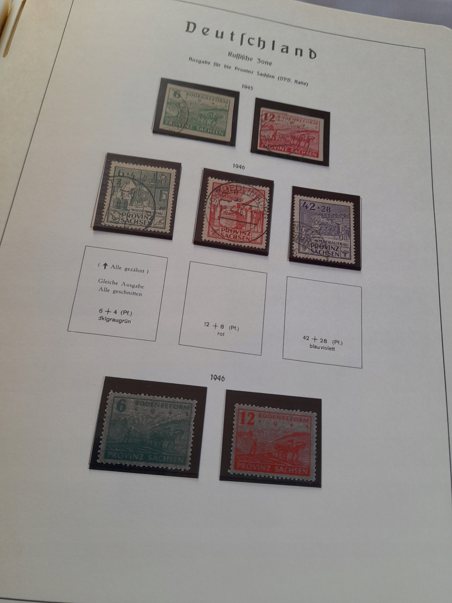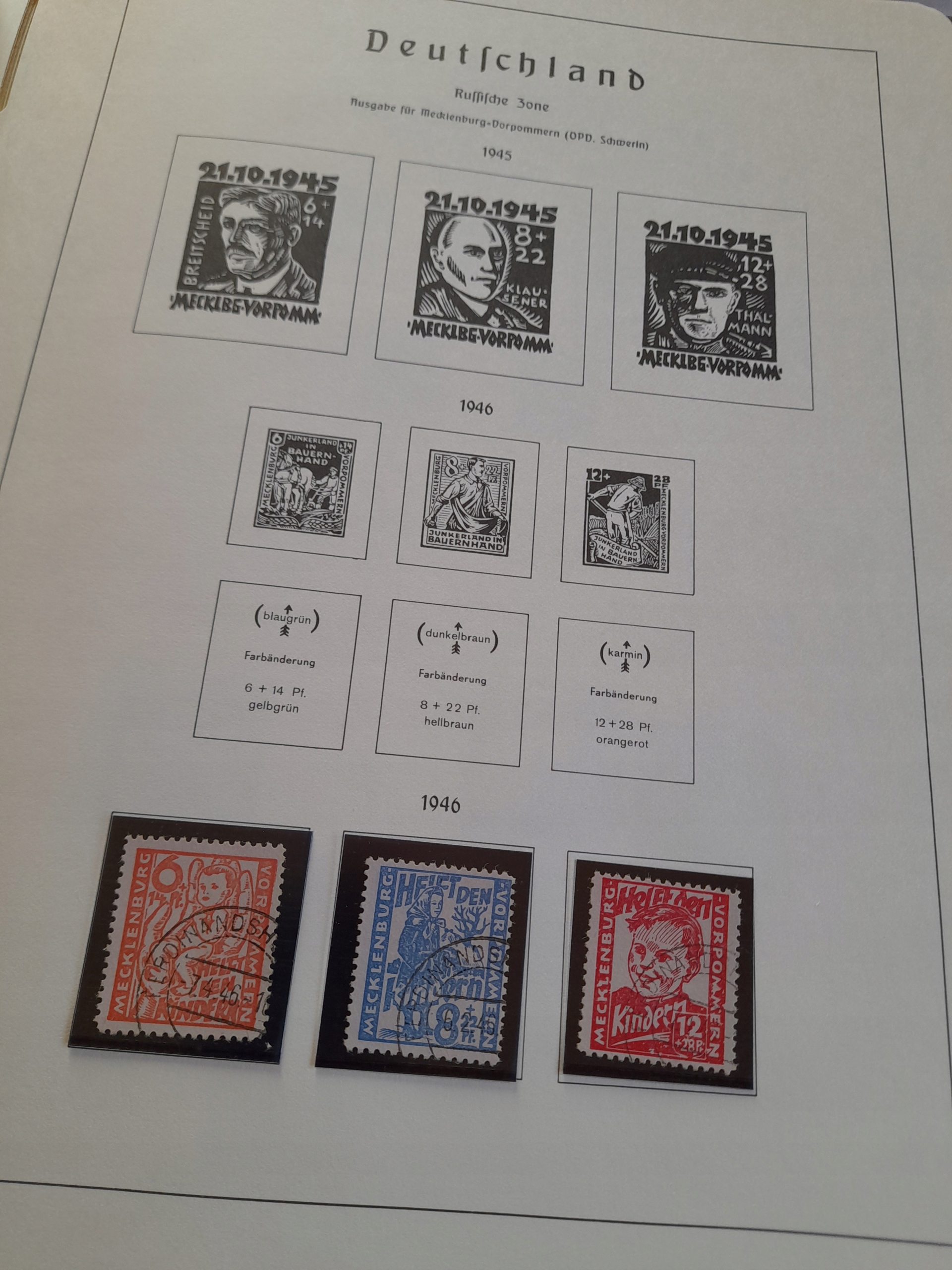 В галерее 62 фотографии. Огромный альбом LEUCHTTURM, около 50 карточек. Ценная коллекция марок из ЗОН АМЕРИКИ, РОССИИ, АНГЛИИ 1945-1949 гг. Значения не проштемпелеваны клеем и штампованы. Ценности в защитных хавидах. Как видите, коллекция нуждается во многих дополнениях. Там, где нет штампов, нет и защитных хавидов. Альбом со следами использования, заметными на фотографиях. Все показано на фотографиях. Состояние как на фотографиях.