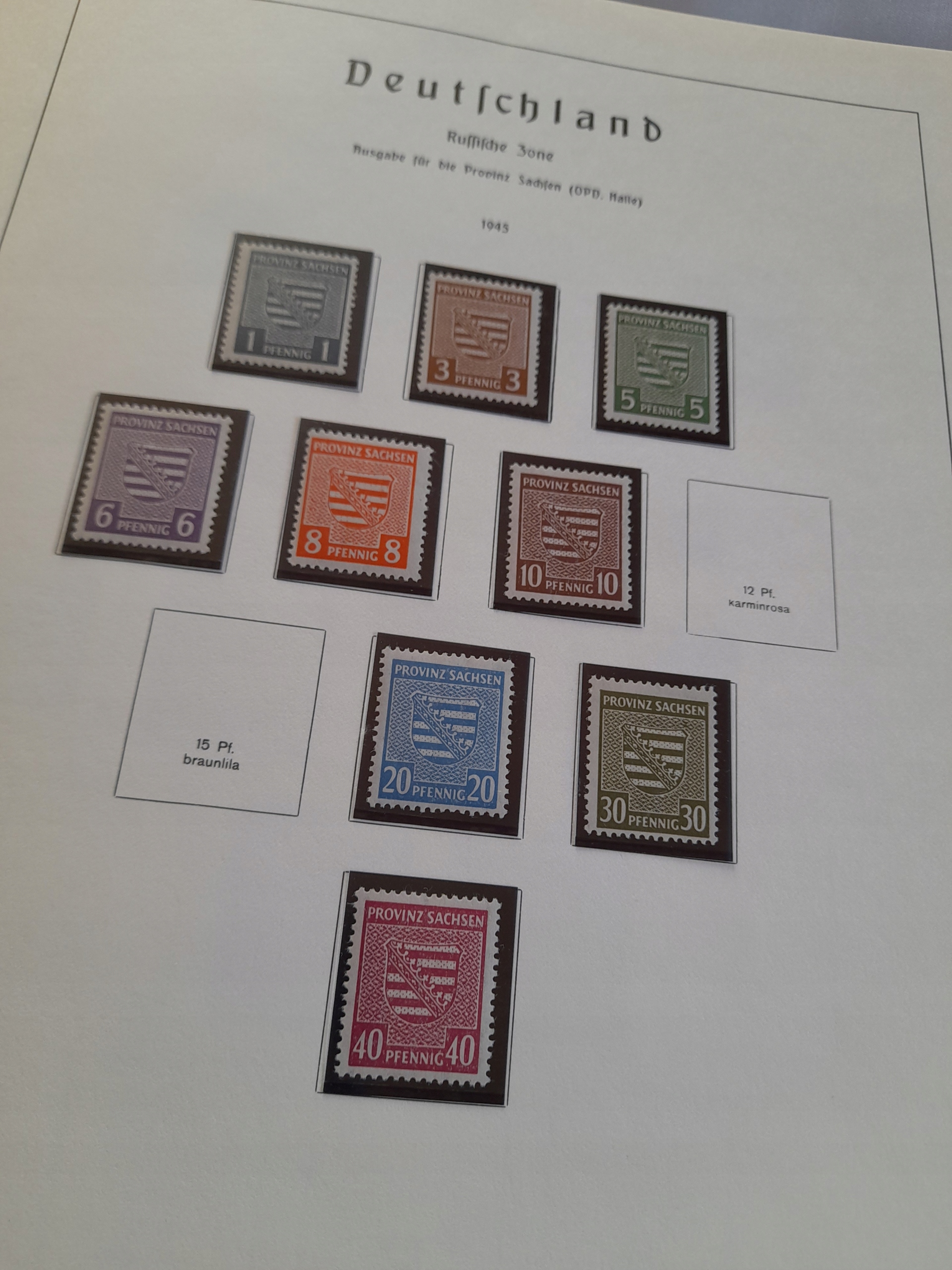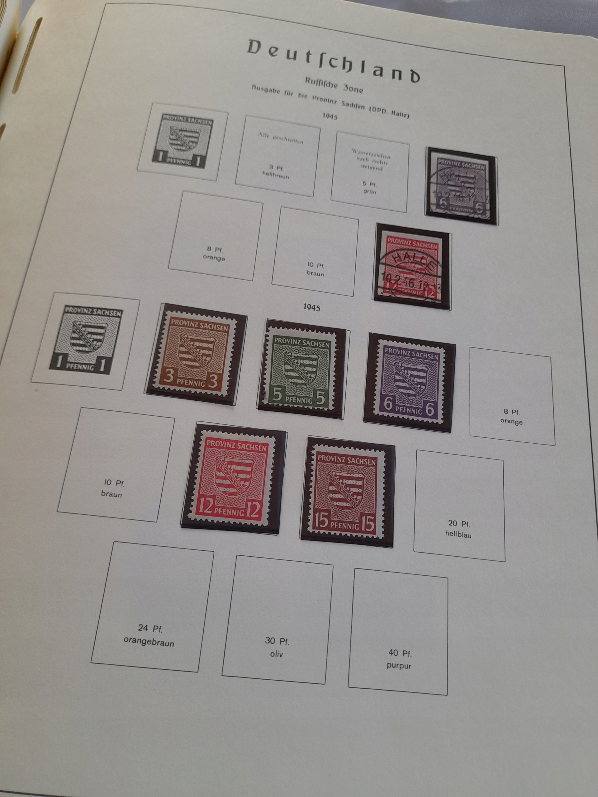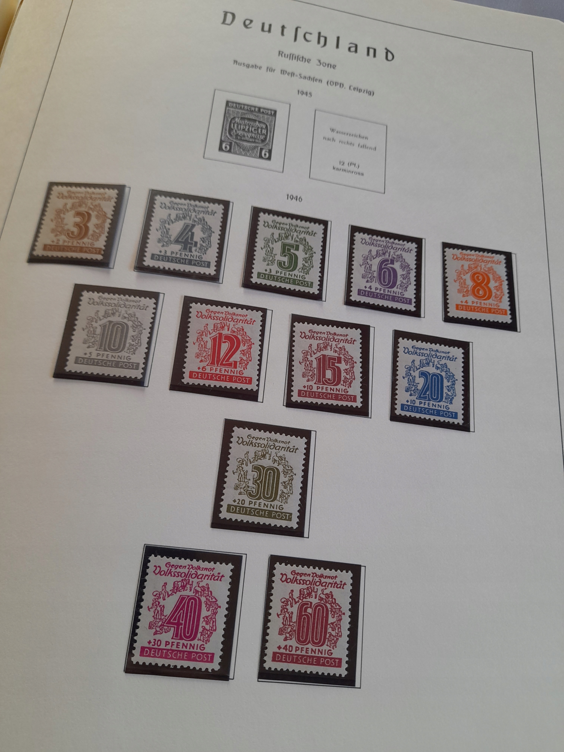 В галерее 62 фотографии. Огромный альбом LEUCHTTURM, около 50 карточек. Ценная коллекция марок из ЗОН АМЕРИКИ, РОССИИ, АНГЛИИ 1945-1949 гг. Значения не проштемпелеваны клеем и штампованы. Ценности в защитных хавидах. Как видите, коллекция нуждается во многих дополнениях. Там, где нет штампов, нет и защитных хавидов. Альбом со следами использования, заметными на фотографиях. Все показано на фотографиях. Состояние как на фотографиях.
