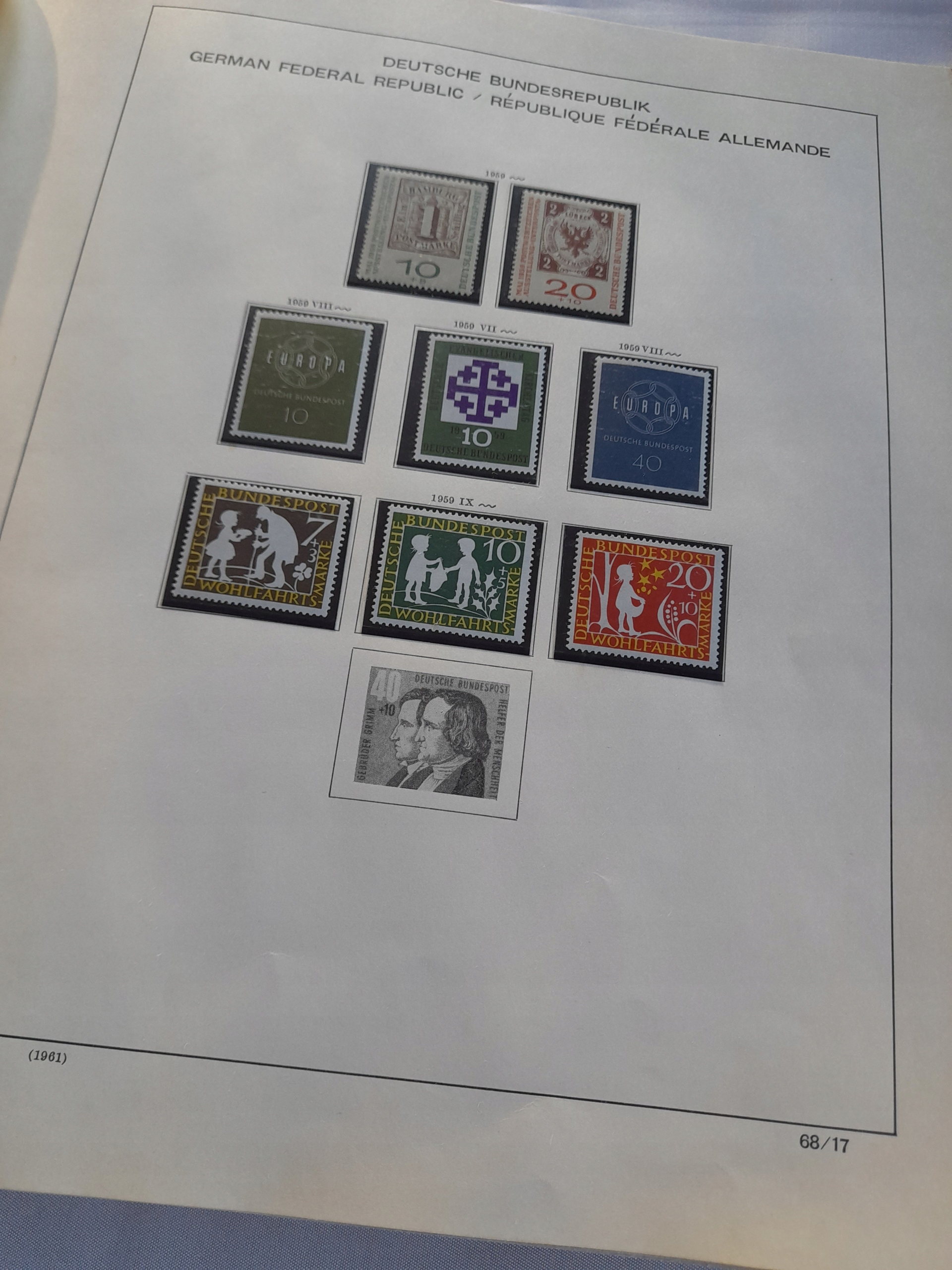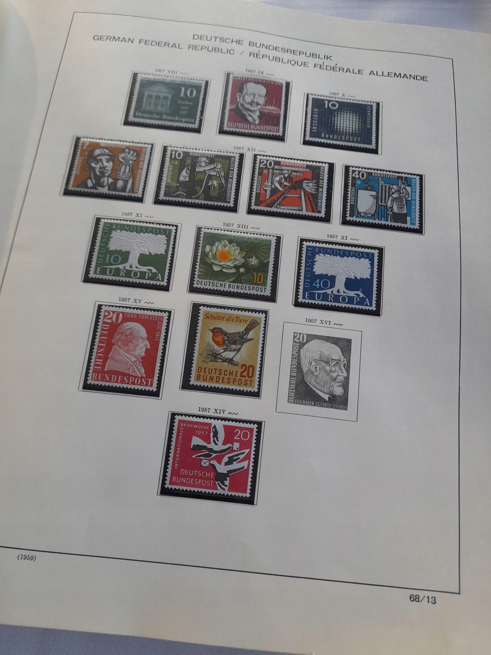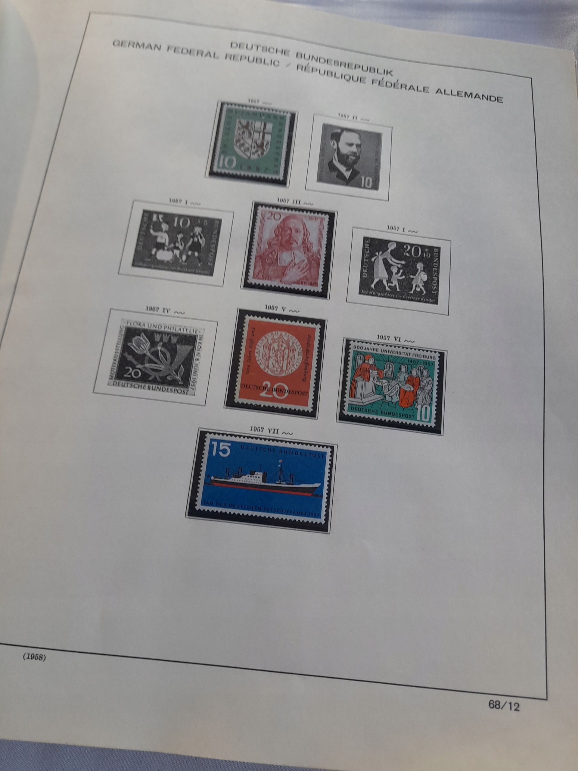 В галерее 74 фотографии. Огромный альбом ШАУБЕК около 64 страниц БУНД 1949-1972 гг. Ценная коллекция нештампованных клеевых марок. Ценности в защитных хавидах. Коллекция заполнена примерно на 80%. На некоторых марках клей может быть слегка поврежден. Альбом со следами использования, заметными на фотографиях. Все показано на фотографиях. Состояние как на фотографиях.