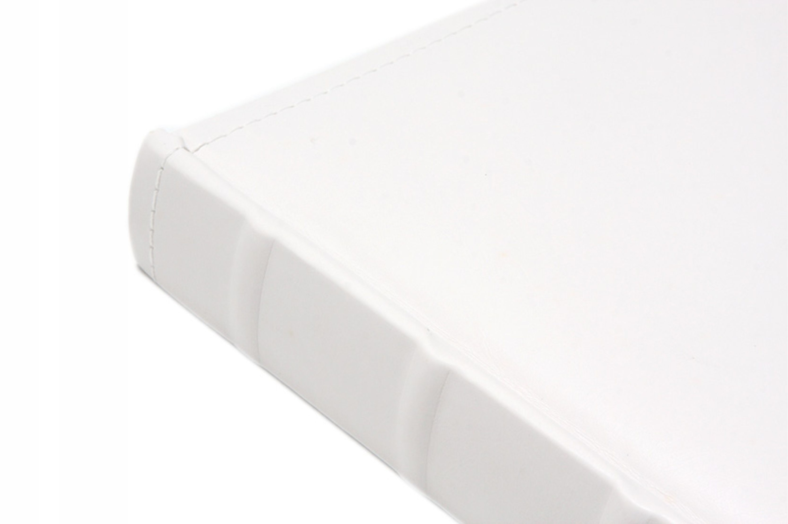 Стильный и элегантный фотоальбом из нежной белой экологической кожи. Переплет гладкий. Единственное украшение такого классического альбома — видимая строчка по краям.