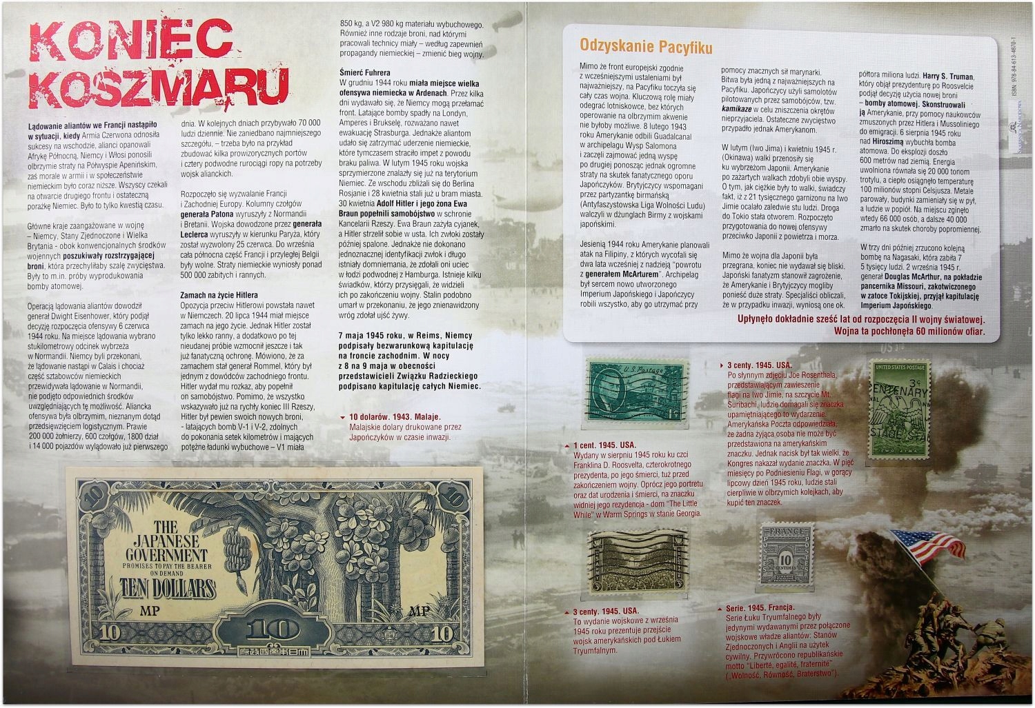 В альбоме: 11 подлинных банкнот, 8 исторических монет, 30 настоящих марок той эпохи.