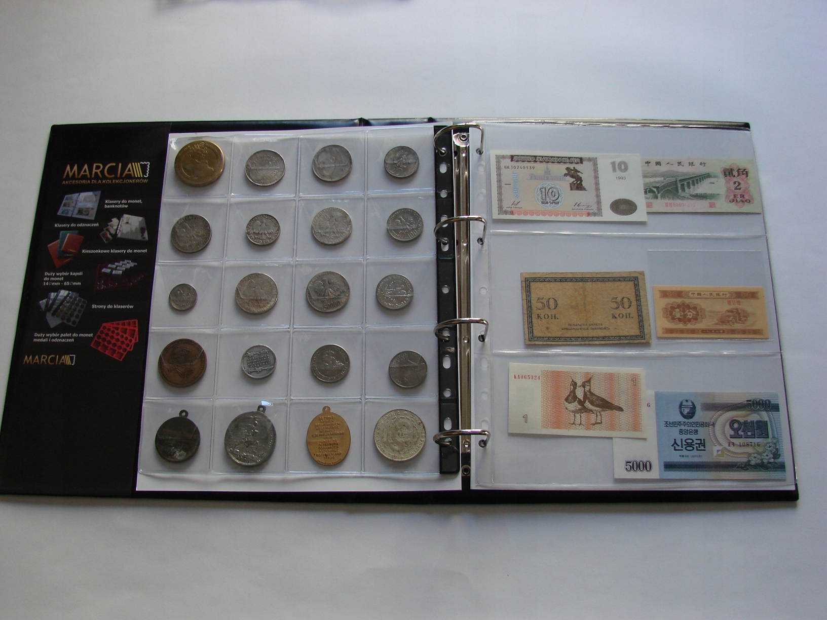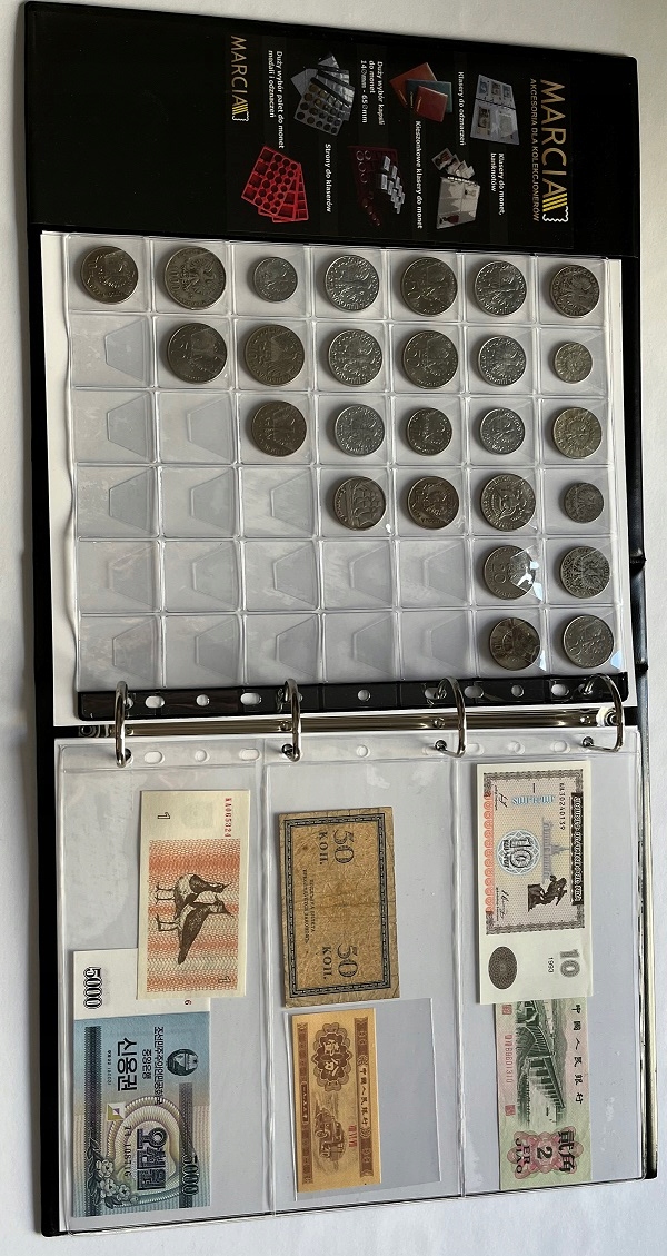В классе 10 страниц для банкнот А4 + 3 страницы для монет А4