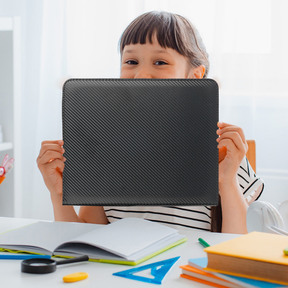 Наружная сторона из водонепроницаемой кожи ПУ и высококачественную мягкую подкладку Обеспечение обеспечения двойной защиты от царапин, ударов, пролитых жидкостей и пыли и легко чистить. Прозрачные карманы изготовлены из прозрачного полипропилена, который является постоянным, кислым, простым в экспозиции и работает.