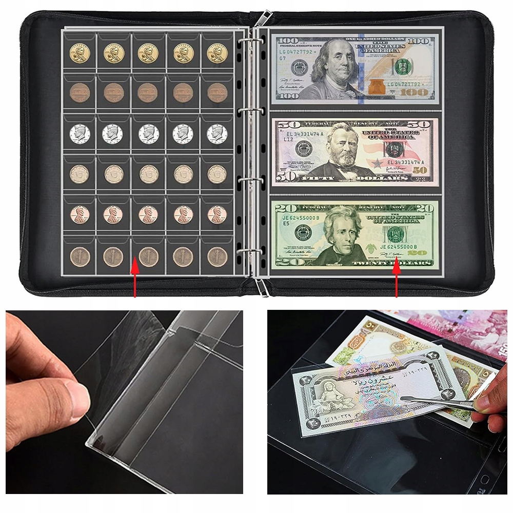 КЛАССНЫЙ АЛЬБОМ НА 24 СТРАНИЦЫ 300 МОНЕТ И 36 БАНКНОТ ЧЕРНЫЙ ОГНЕСТОЙКИЙ