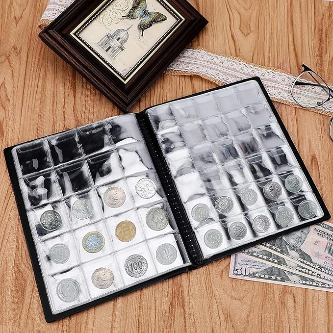 🪙🪙Широкое применение: Эта книга для сбора монет — хороший способ хранить монеты, банкноты, марки, значки, жетоны, медали, десять центов, пенни и так далее. Идеальный подарок для коллекционеров монет или семьи и друзей, которые любят коллекционировать монеты из разных стран.