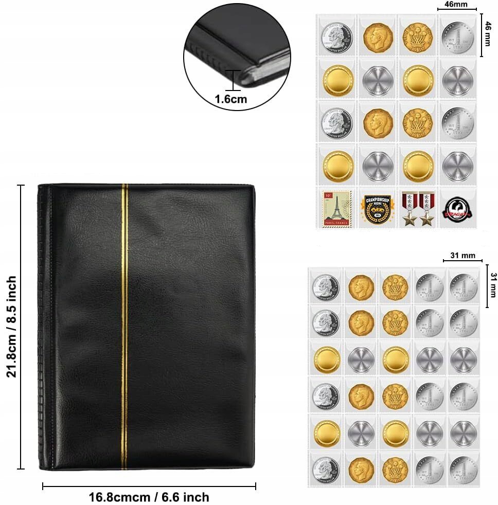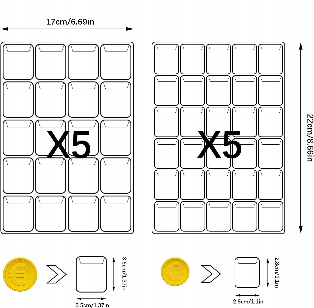 🪙 Размер: Размеры монетницы: 218 x 168 мм/8,58 x 6,61 дюйма; внутренняя сетка разделена на два размера по 5 сторон каждый: 100 больших сеток для монет диаметром до 35 мм и 150 маленьких сеток для монет диаметром до 28 мм.