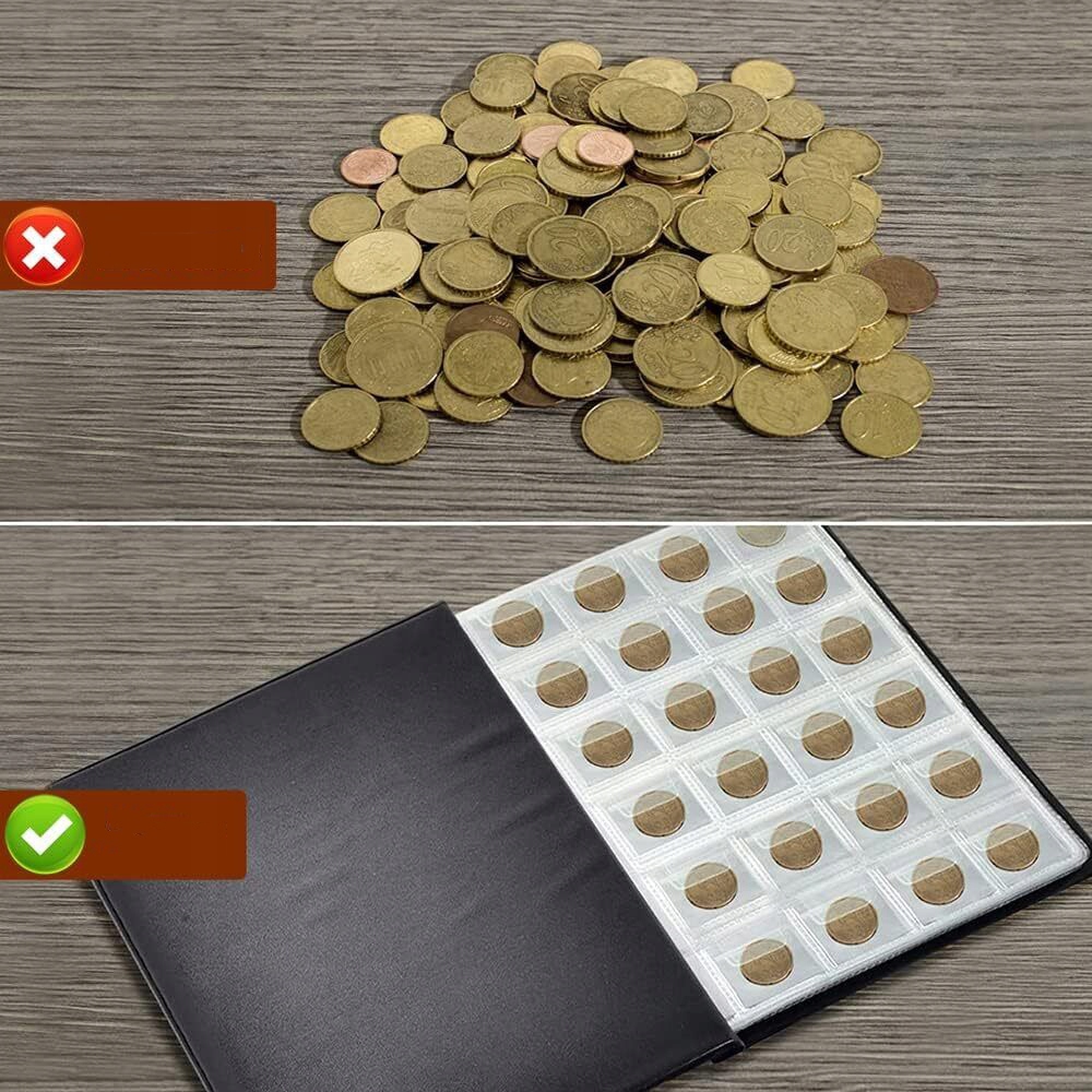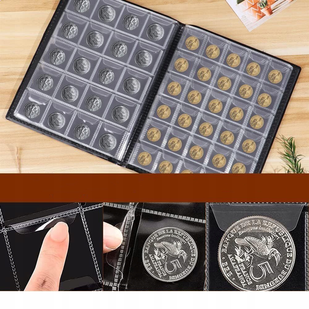 🪙 Качество материала: Обложка монетницы выполнена из высококачественной искусственной кожи, гладкой и прочной, приятной на ощупь, с закругленными углами, четкой и красивой фактуры; 250 карманов изготовлены из прозрачного ПВХ-материала, прочного и толстого, его нелегко сломать, легко носить с собой, достаточно для защиты монет.