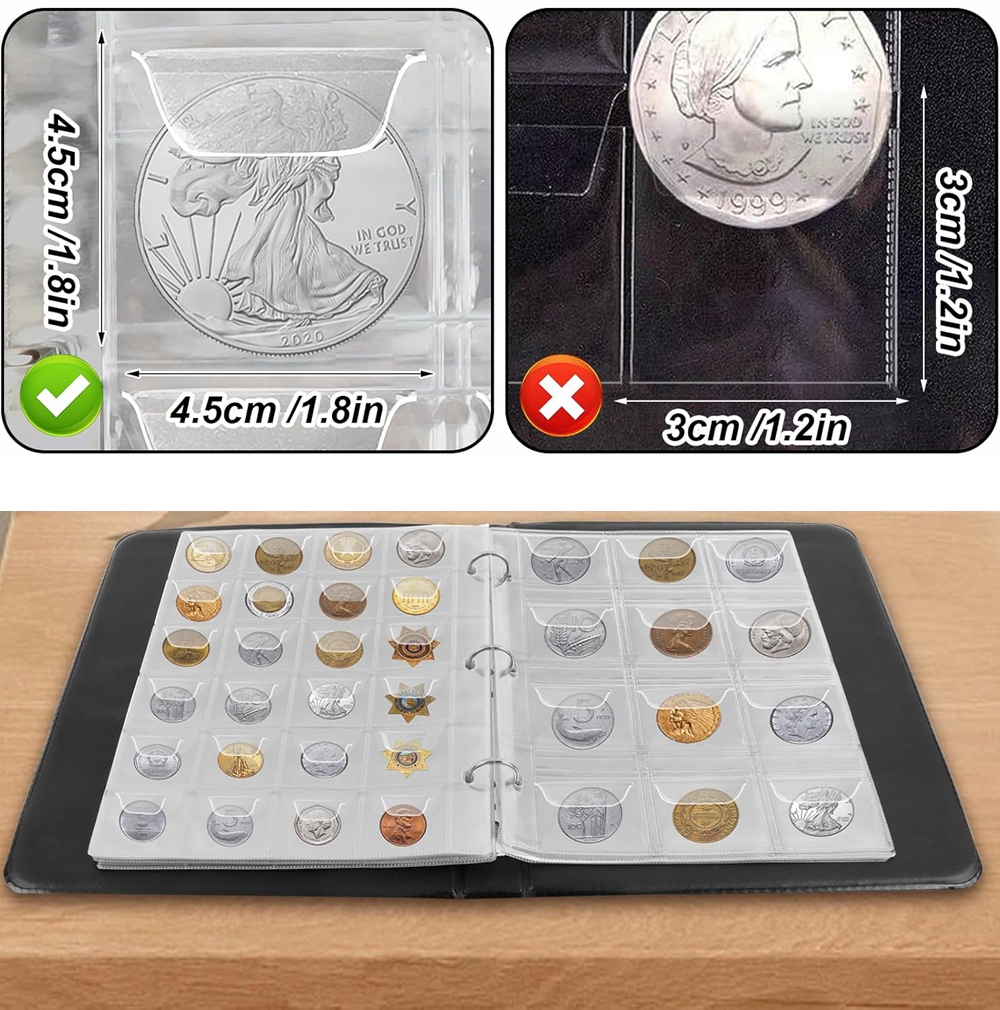ressive 【Монетный альбом в европейском формате】 Вы получите альбом монеты с размерами 26 * 20 * 5 см, который имеет 20 страниц и 420 отделений, в том числе 15 страниц (с 360 компартментами 3,5 * 3,5 см) и 5 страниц (с 60 большими компромиссами 4.5 *5 CM). Различные размеры сетки позволят вам собирать монеты разных размеров и обеспечить большое пространство для хранения монет.