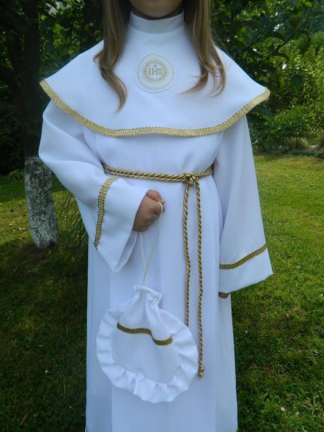 - В комплект входят: альб, накидка, веревка и сумка (венок в комплект не входит). установил)