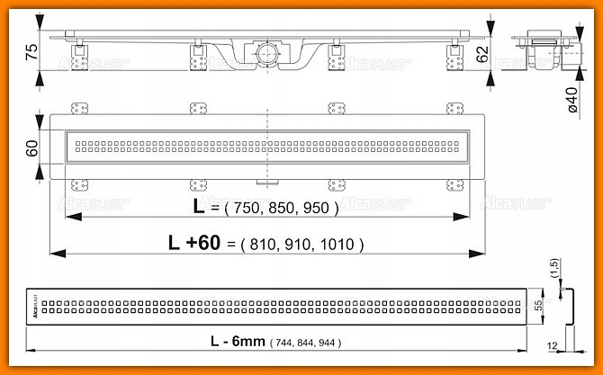 AlcaPLAST Odpływ liniowy APZ9-750M 75cm z rusztem!