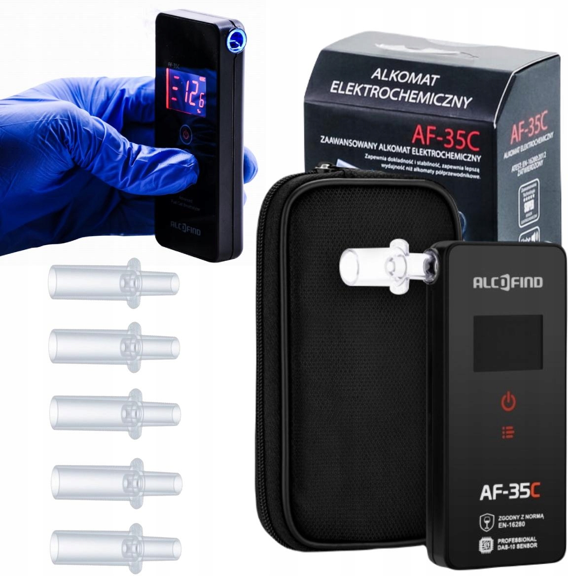 Alcofind AF 35C Bettkealyzer - это устройство, предназначенное для отдельных пользователей и более профессиональных приложений. Он принадлежит группе дыхания из серии AF. Представленный тестер алкоголя был подвергнут специализированным исследованиям, благодаря которому он получил европейский сертификат в соответствии со строгим стандартом EN-16280. Это исследование подтверждает его высокое качество, стабильность действия и надежные результаты измерения.