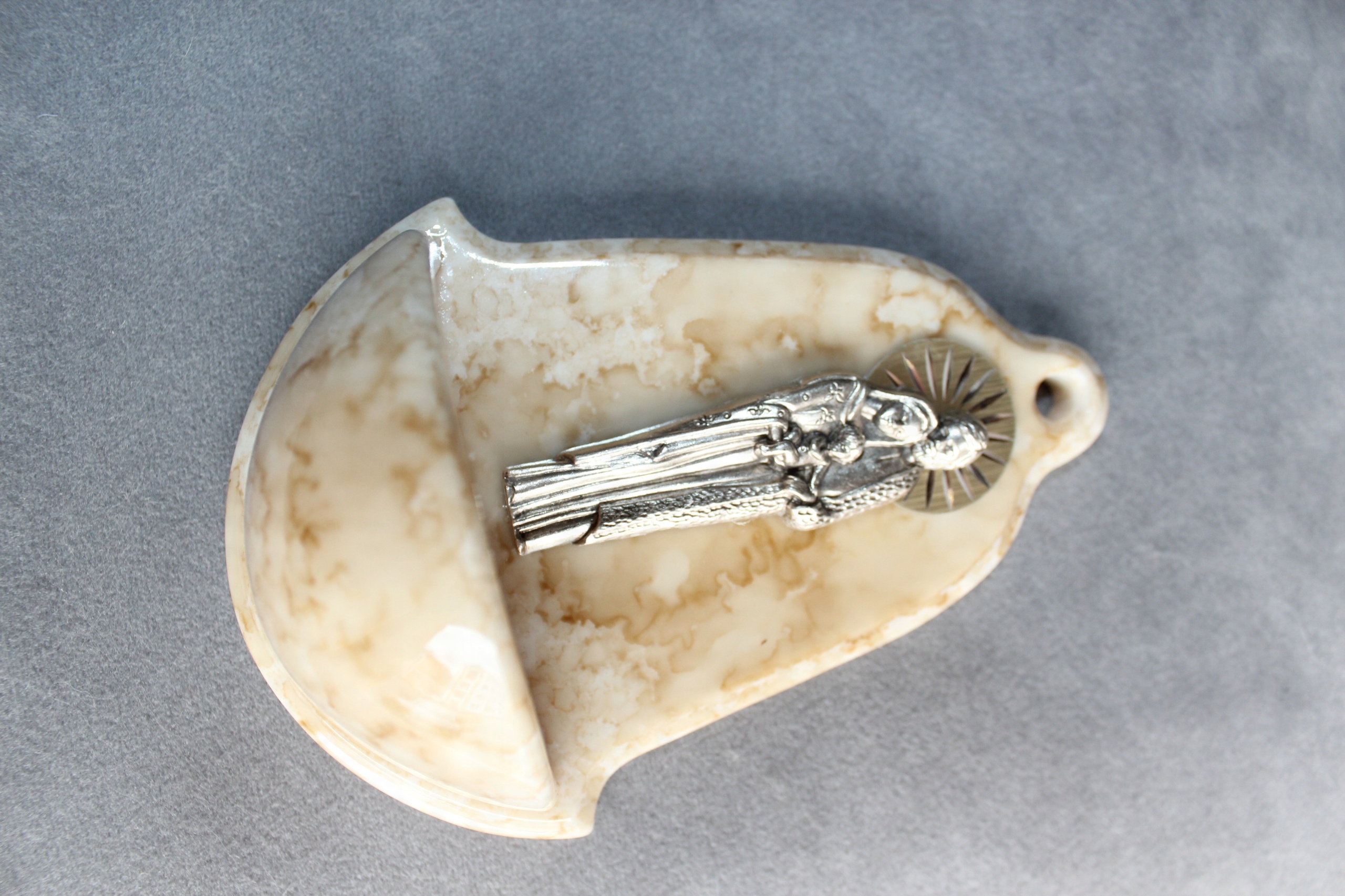 Ступница из алебастра с металлическим гербом Святого Семейства
