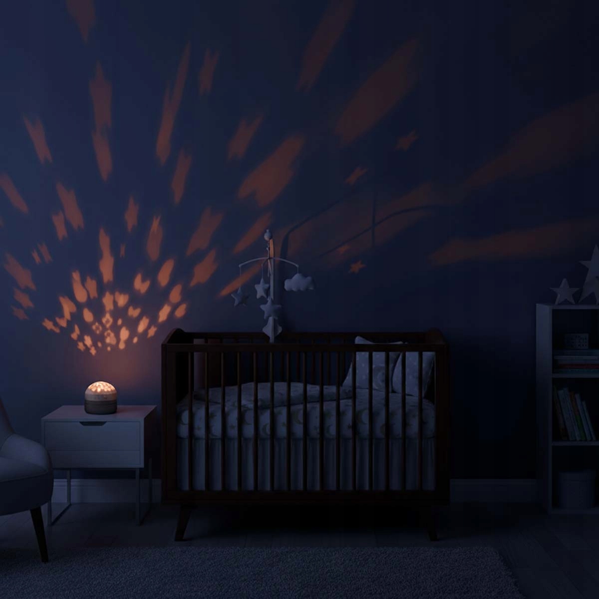 Он сочетает в себе нежную световую проекцию с успокаивающими звуками, благодаря чему быстро становится неоценимой поддержкой, когда ваш малыш успокаивается вечером.