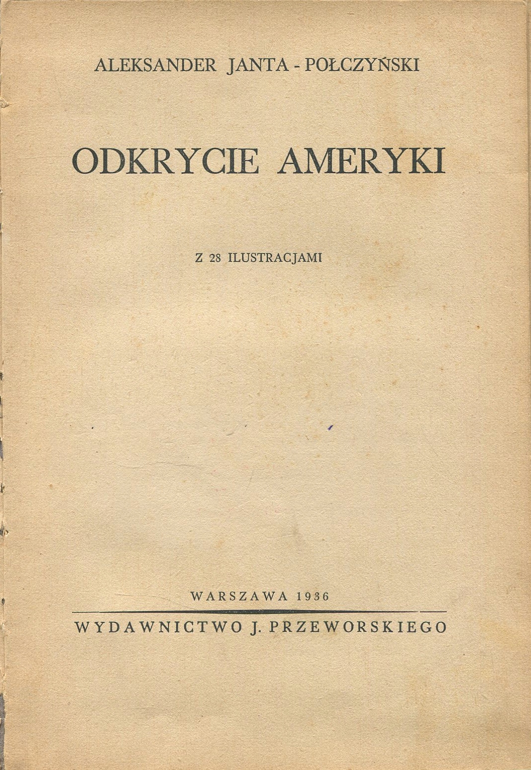 Aleksander Janta-Połczyński ODKRYCIE AMERYKI wyd. pierwsze 1936 USA Stany