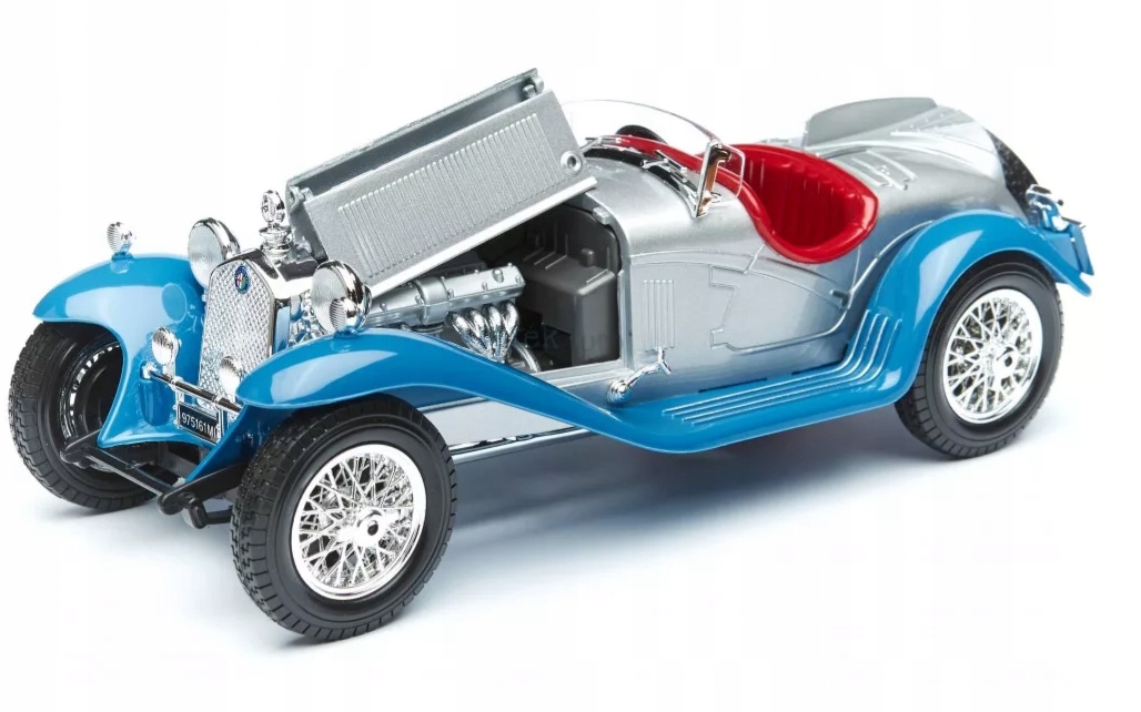 Модель автомобиля Alfa 8c характеризуется вниманием к деталям. Он имеет движущиеся элементы - крышки двигателя, колеса