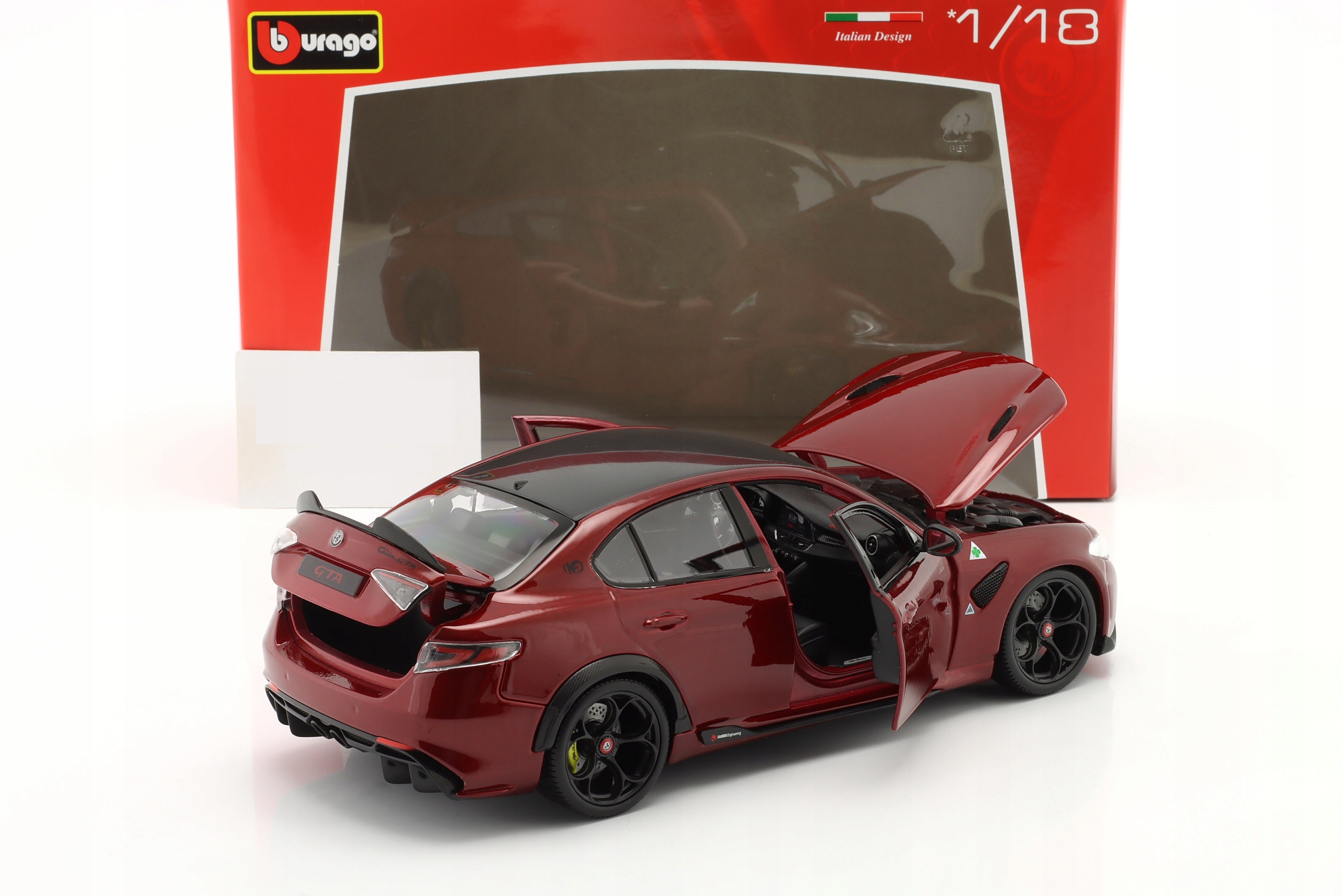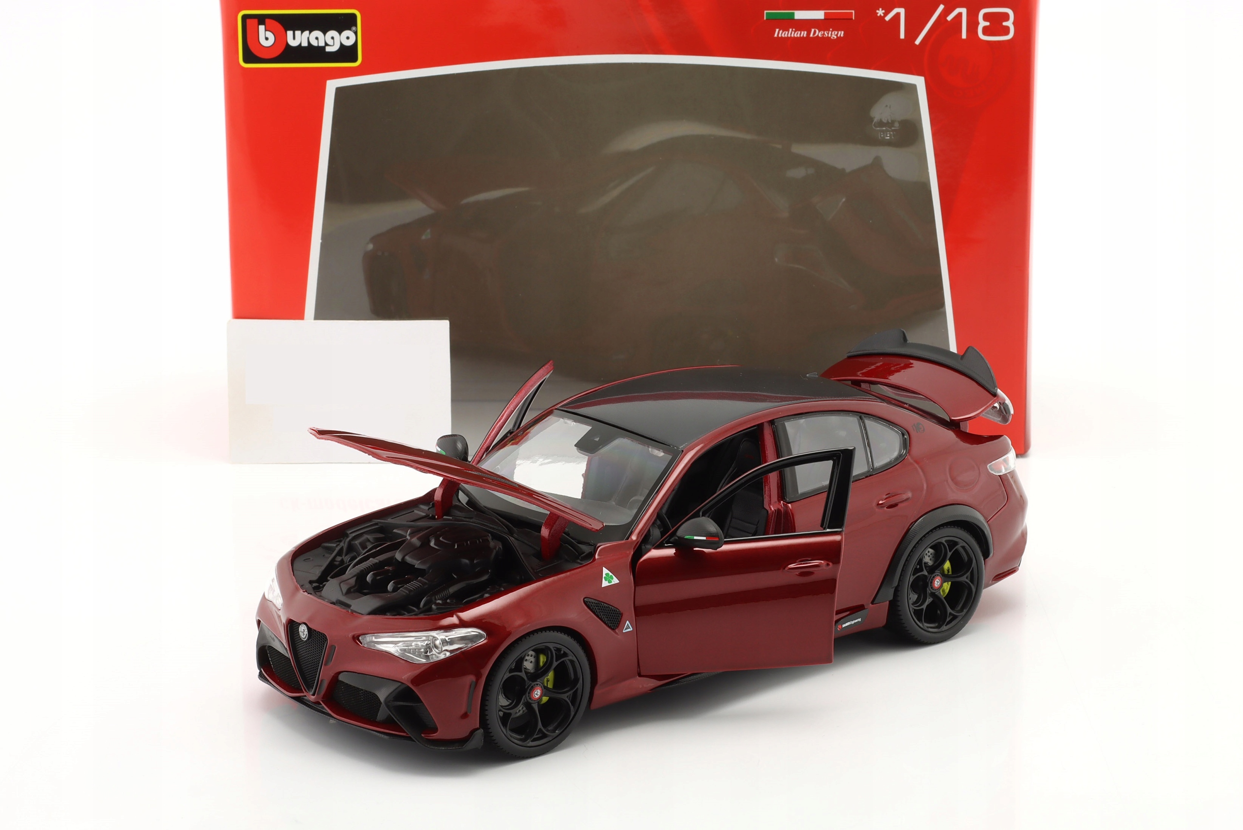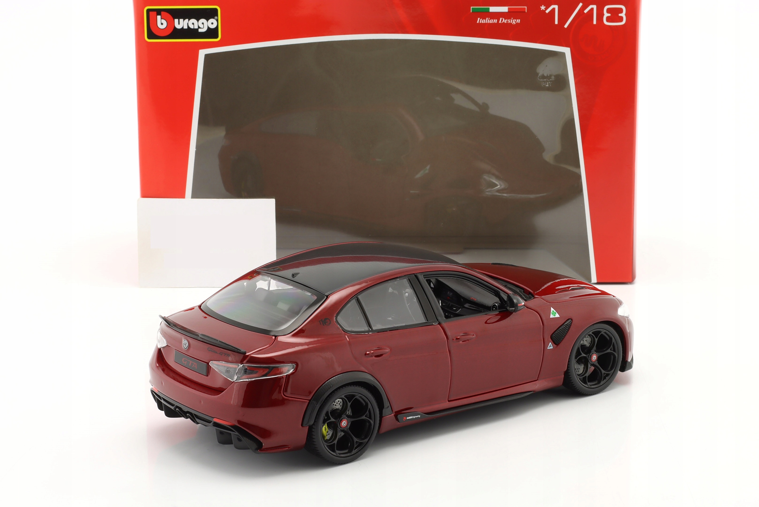 Коллекционная металлическая модель автомобиля Alfa Romeo Giulia GTA Quadrifoglio 2020 года в масштабе 1:18 от Bburago