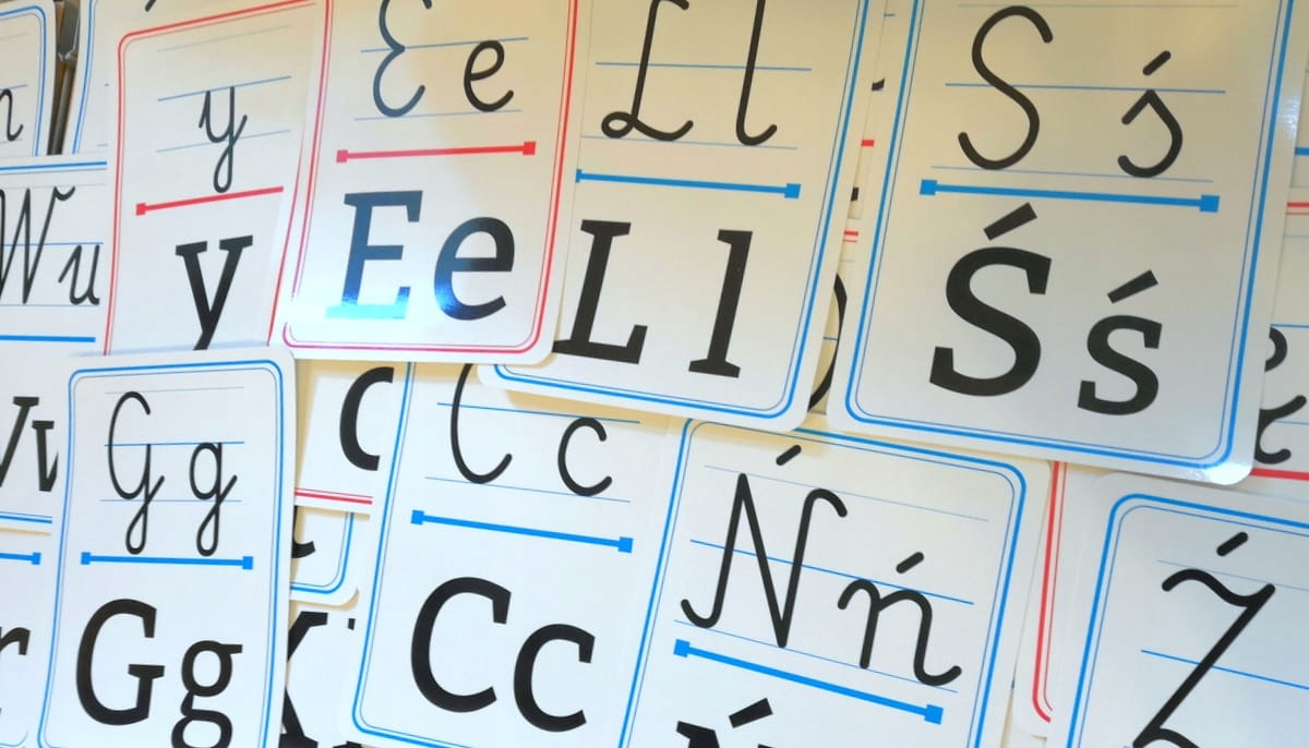 В комплект входят 32 односторонние фольгированные доски (13,5см х 18,5см) с буквами польского алфавита в виде письменных и печатных букв. Кроме того, разными цветами отмечены гласные и согласные.