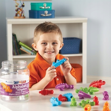 - Ребенок должен сопоставлять соответствующую голову с хвостом аллигатора, изучая цвета и буквы