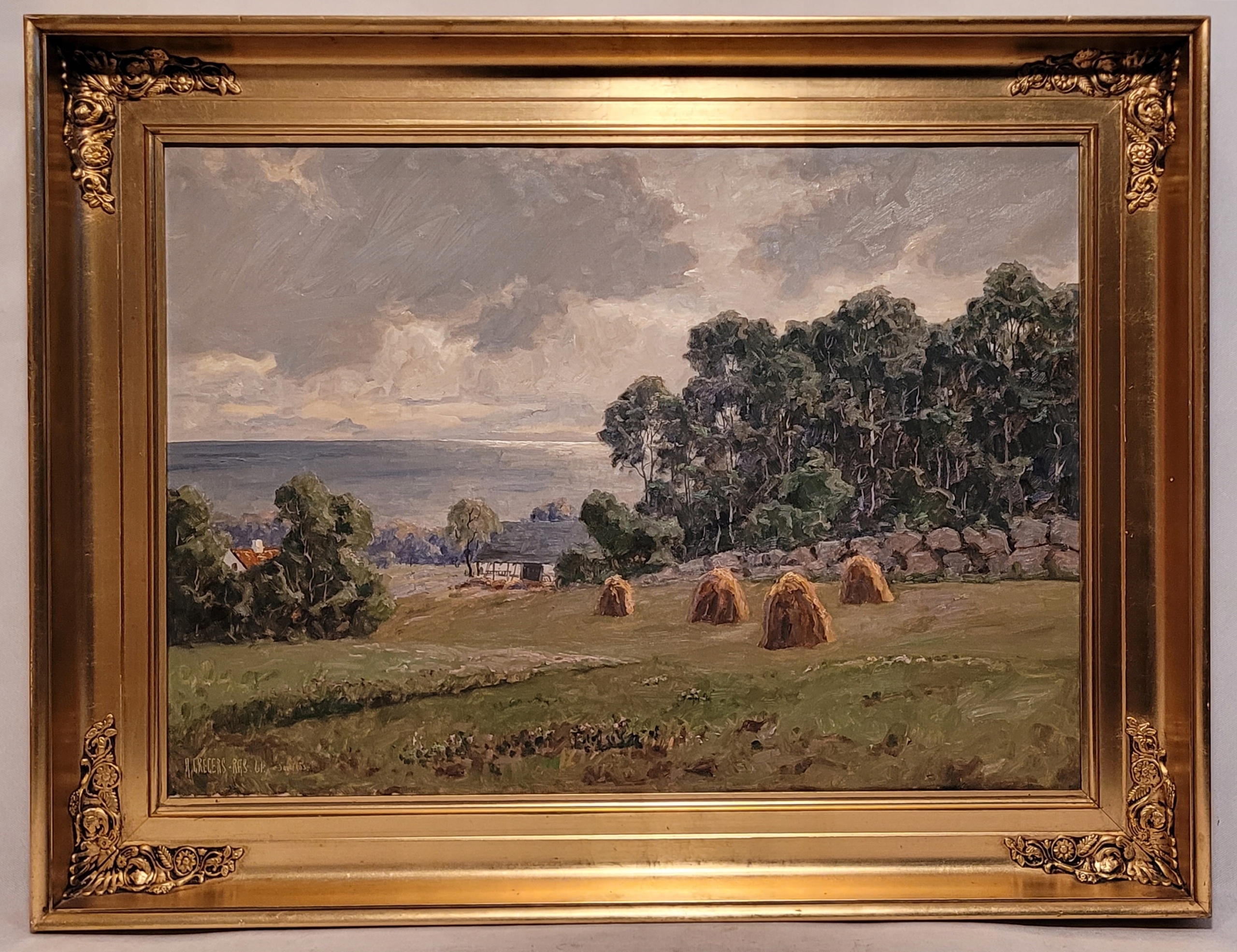 АЛЬФРЕД ГРЕГЕРС РАСМУССЕН (1904 – 1994) – «ПЕЙЗАЖ С ЗАЛИВОМ», картина маслом.