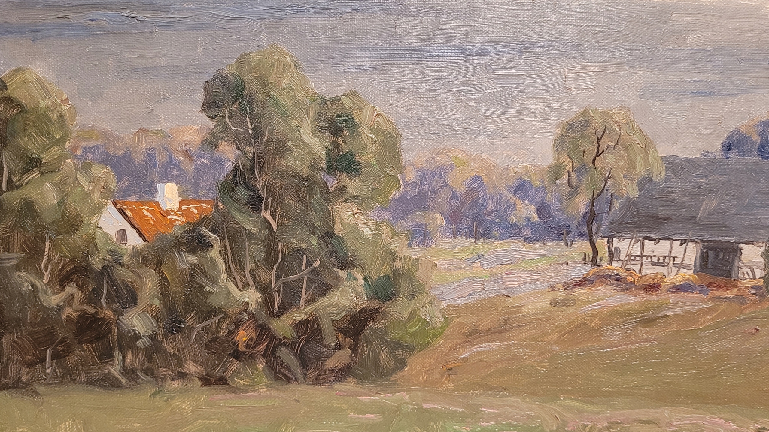 Предмет продажи - красивая, старинная картина маслом «ПЕЙЗАЖ С ЗАЛИВОМ».
