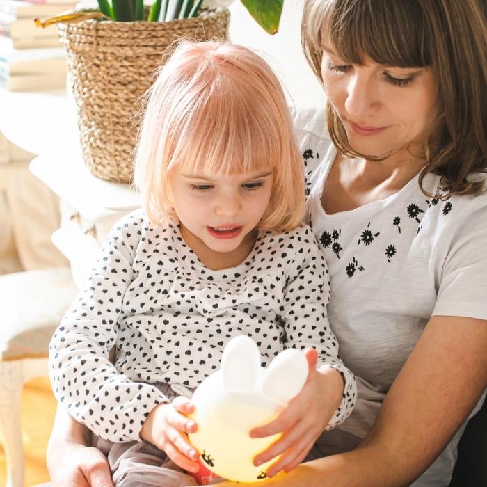 - Мягкие ушки кролика светятся нежным, меняющим цвет светом, а вся голова освещается теплым светом, успокаивая вас во время сна.