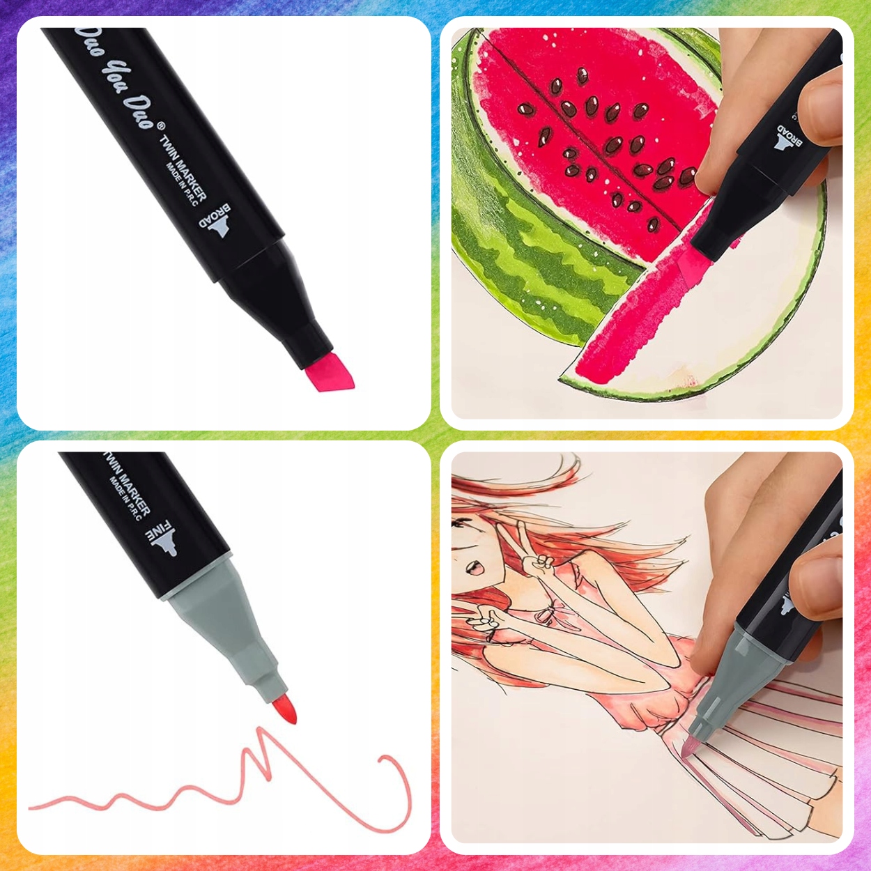 Набор цветов маркеров подобран таким образом, что их можно использовать в различных областях рисования: от дизайна одежды, дизайна изделий до архитектурных рисунков, пейзажей и т. д. манга. Попробуйте и проявите свое творчество!