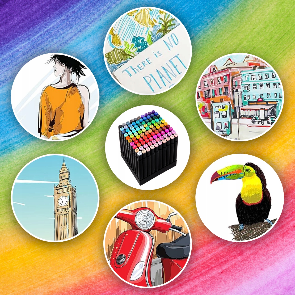 Набор из 100 маркеров насыщенных различных цветов — предложение для всех, кто начните свое приключение с рисования и для тех, кто рисует каждый день.