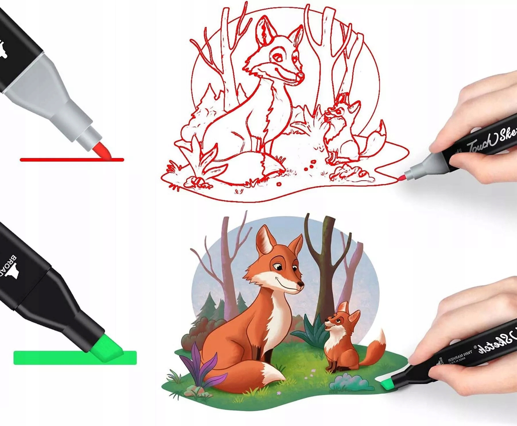 Отличная пигментация спиртовых чернил, содержащихся в маркерах, гарантирует, что рисунки, выполненные ими, будут насыщенными, четкими и долговечными. исчезнет.