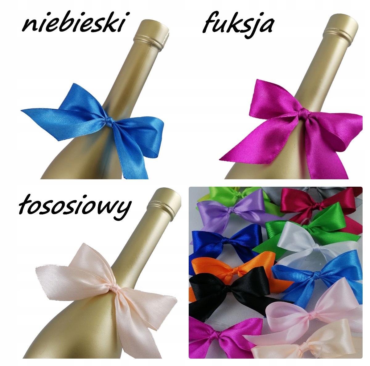Благодаря гибкой прозрачной резинке бантики подходят к любой бутылке.