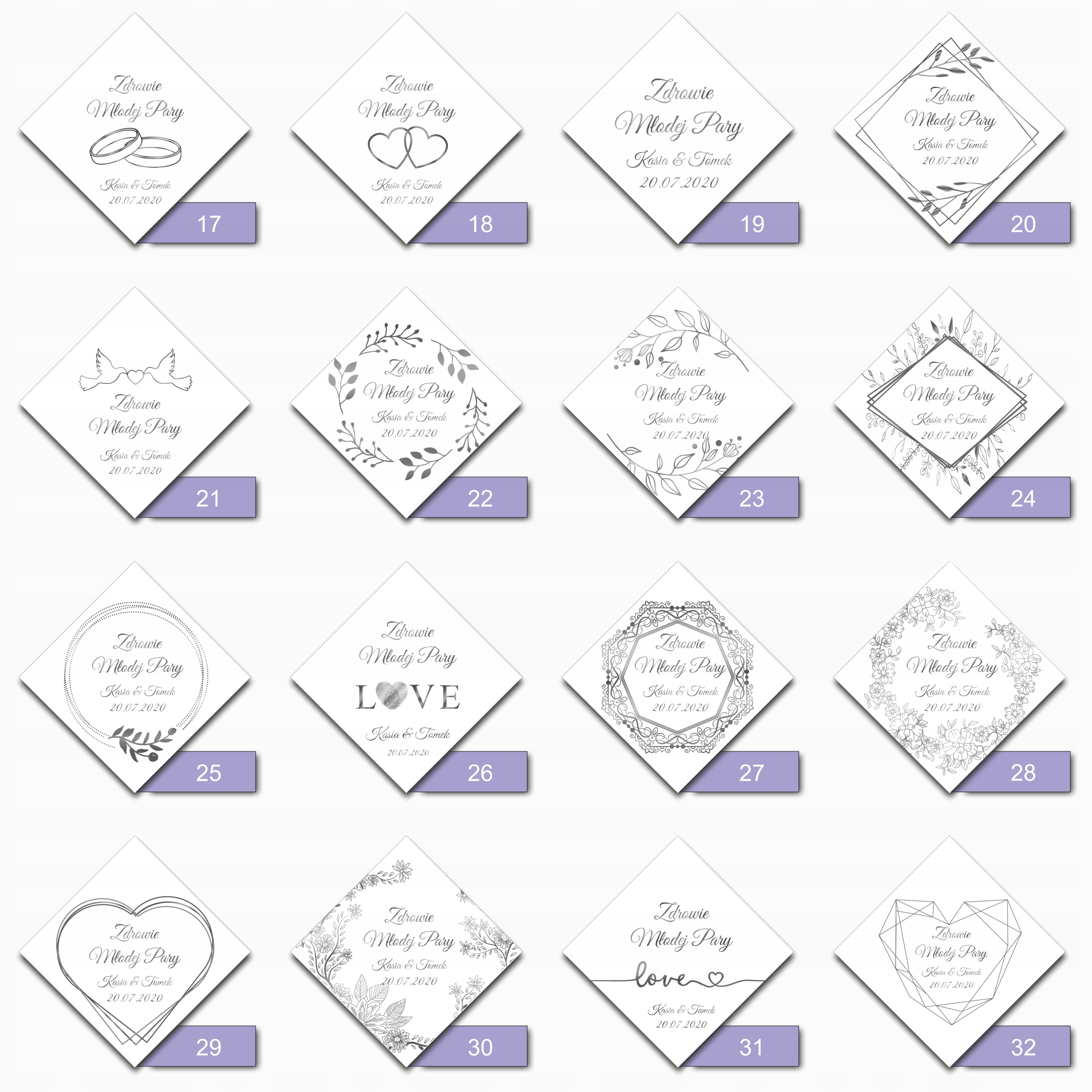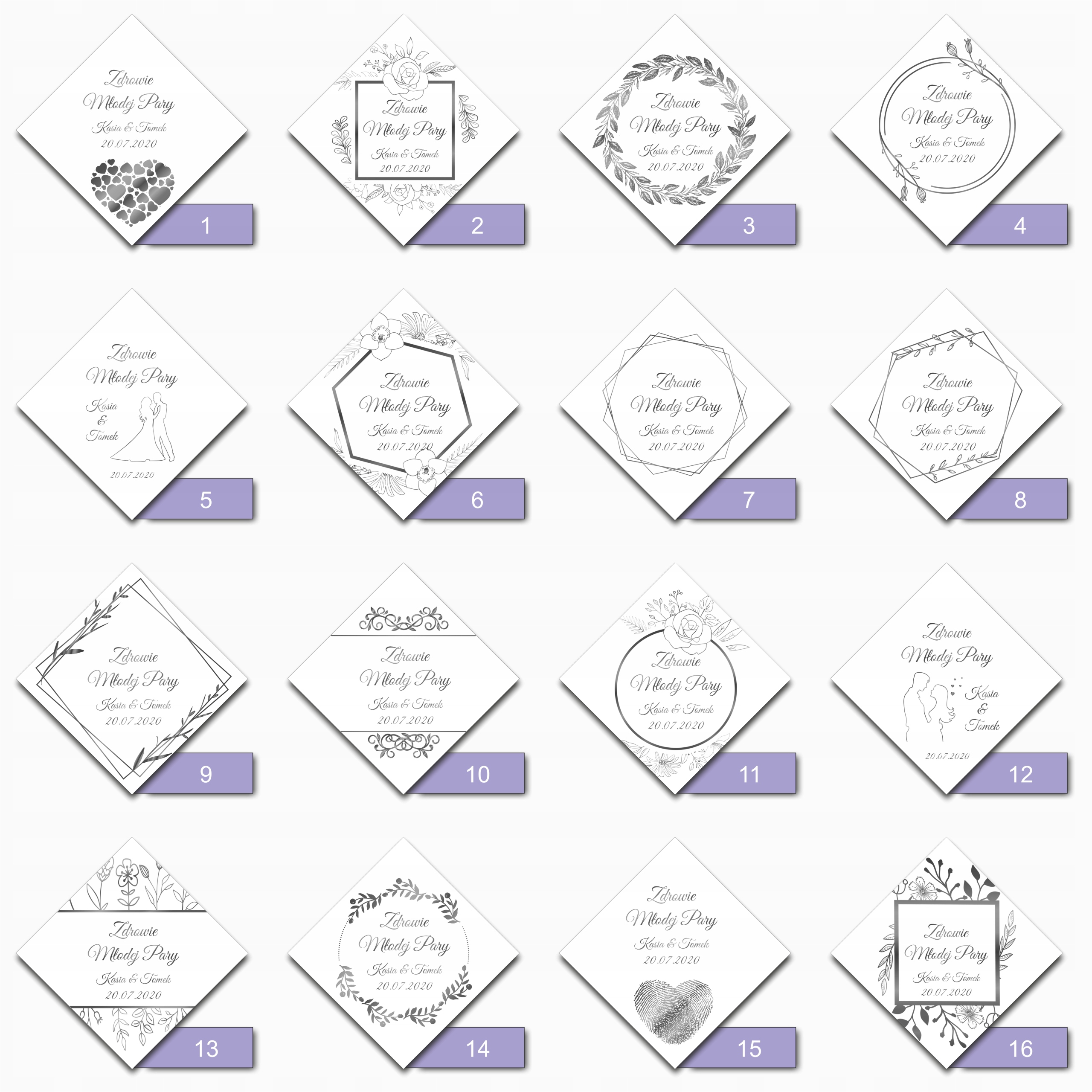 Алкогольні підвіски, весільні горілчані етикетки, квадрат, СРІБЛО, 30 шт.