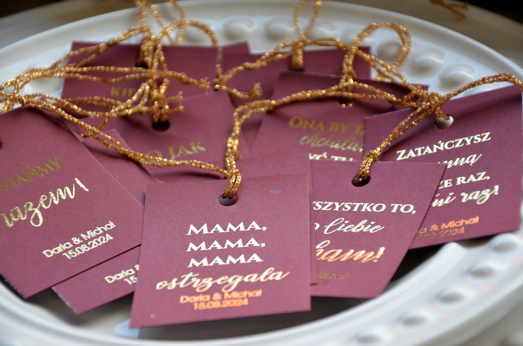 Просматривая «Алкогольные подвески Свадебная водка 48шт позолоченные песни», вы можете быть уверены, что данный товар из каталога «Этикетки и бирки для алкоголя» будет доставлен из Польши и проверен на целостность. В цене товара, указанной на сайте, учтена доставка из Польши. Внимание!!! Товары для Евросоюза, согласно законодательству стран Евросоюза, могут отличаться упаковкой или наполнением.
