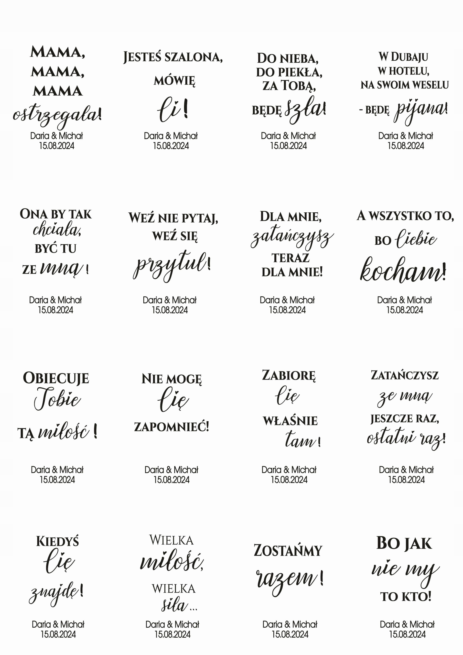 Алкогольные подвески для свадебного стола. Комплект включает в себя 48 подвесок с различными текстами песен.