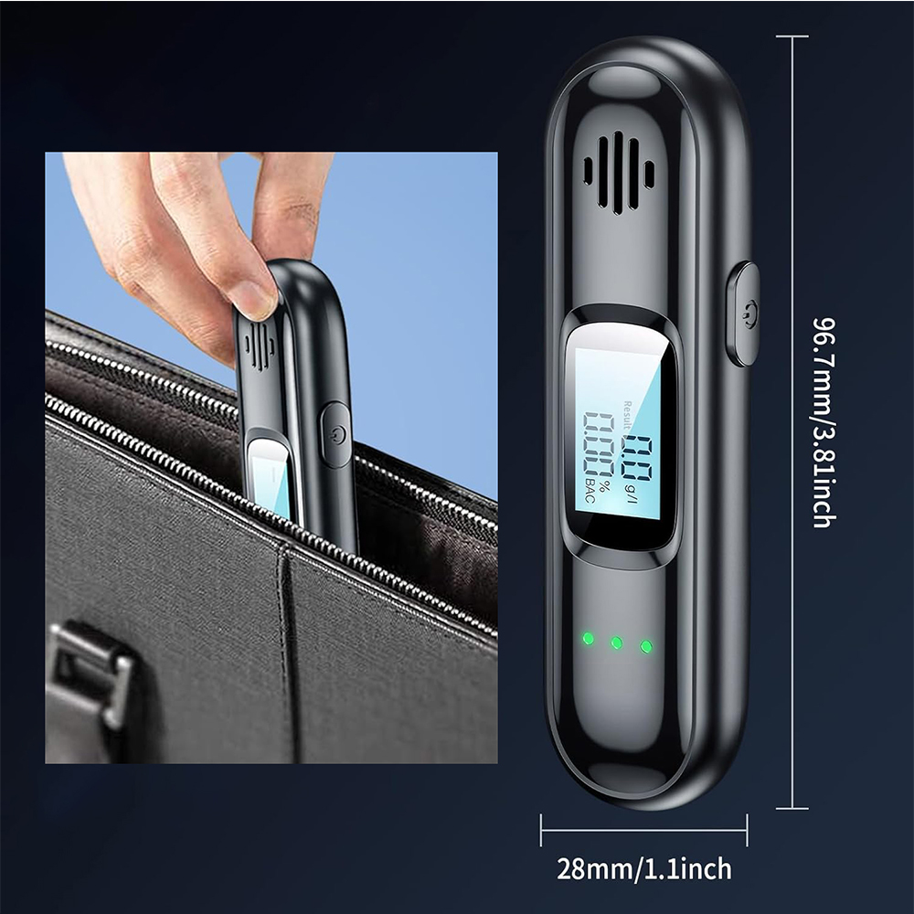Портативный глюкометр небольшой, его можно легко носить с собой в сумочке или кармане. В комплект входит USB-кабель, позволяющий подключить алкотестер к USB-порту для быстрой зарядки. Идеально подходит для свадеб, вечеринок, фестивалей и других общественных мероприятий, чтобы помочь вам решить, готовы ли вы водить машину.