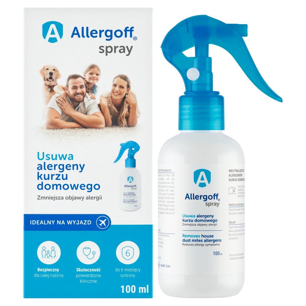 Allergoff® Spray уменьшает симптомы аллергии. Улучшает качество жизни и качество сна людей с аллергией на аллергены домашней пыли. Препарат безопасно снижает количество пылевых аллергенов во вдыхаемом воздухе. Он нейтрализует (инактивирует) аллергены и склеивает частицы пыли в более крупные нелетучие частицы, которые оседают на поверхности. Это
