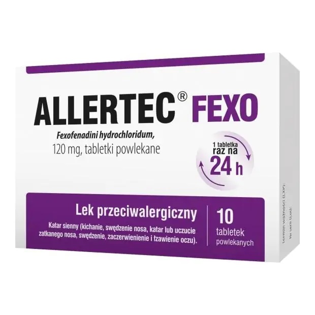 Allertec Fexo содержит фексофенадина гидрохлорид, который является антигистаминным средством. Препарат применяют для лечения взрослых и детей в возрасте от 12 лет и старше. симптомы сенной лихорадки (сезонный аллергический ринит), такие как чихание, зуд в носу, насморк или заложенность носа, а такжезуд, красные и слезящиеся глаза.