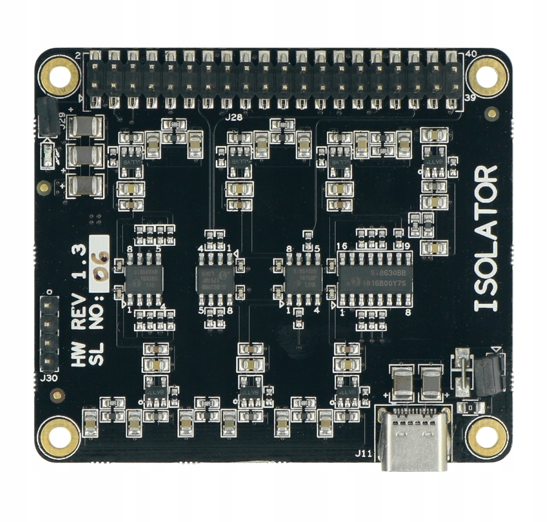 Гальваническая развязка между миникомпьютером и звуковой картой ЦАП в виде шилда для Raspberry Pi, совместимая с шилдами DAC Katana и BOSS. Линии I2C, I2S и GPIO изолированы. Изолятор поддерживает частоту дискретизации в диапазоне от 44,1 кГц до 192 кГц. На плате имеются дополнительные контакты интерфейса I2C.