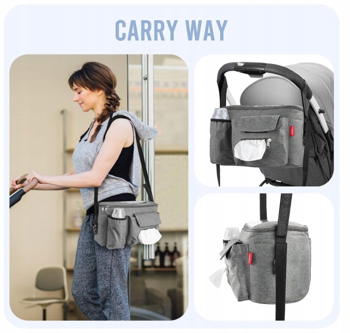 Сумка Allonway для закрытых колясок имеет 3 чашки ручки, 1 карман для носовых платков, 1 верхний пакет из ПВХ, 1 задний карман для ползунка, 1 внутренний открытый карман для хранения вещей и предметов вашего ребенка