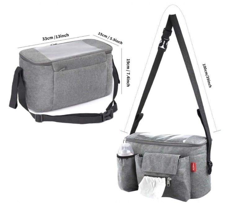 Сумка для прокрутки имеет размеры 33 х 19 x 15 см и будет размещать такие предметы, как бутылки для детей, пустынь, бутылки, ткани, маленькие игрушки, сотовые телефоны и не только.