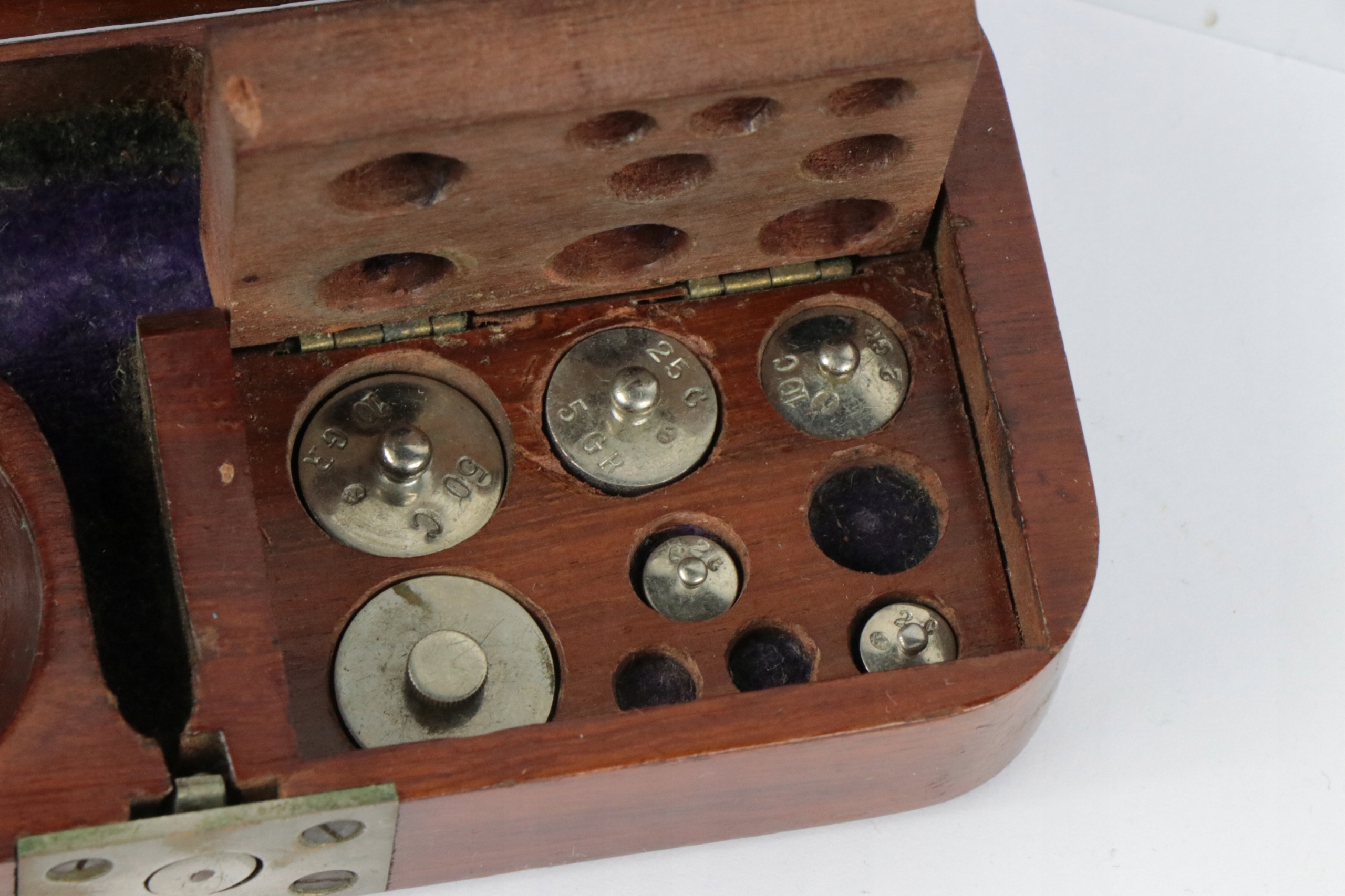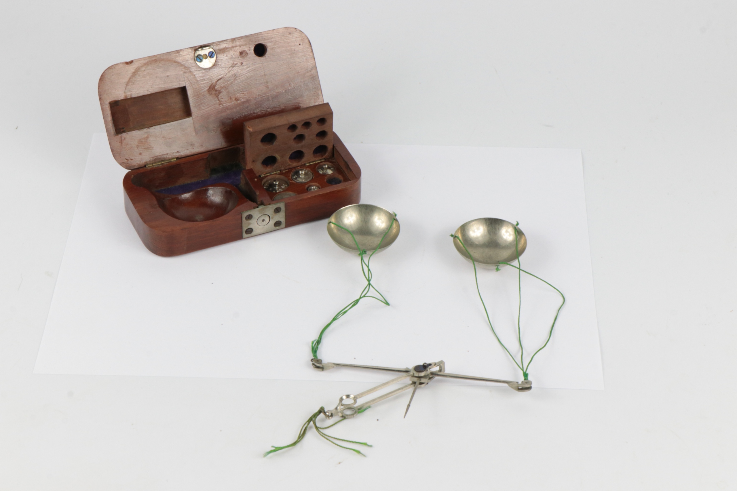Бриллиантовые весы. Вес без названия производителя. Корпус из красного дерева. В футляре находится несколько гирь для взвешивания бриллиантов. Вес без названия производителя, скорее всего весы от Williams London