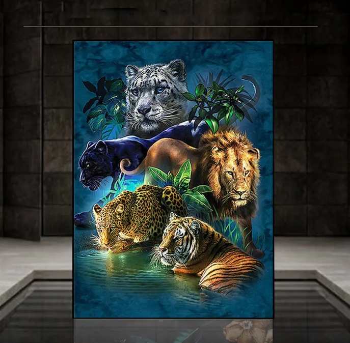 Алмазная вышивка — это уникальный вид искусства, позволяющий создавать потрясающие изображения с помощью маленьких сверкающих кристаллов. Модель WILD CATS представляет красивых, величественных кошек в их естественной среде обитания. Каждая деталь изображения точно воспроизведена, благодаря чему готовая вышивка выглядит чрезвычайно реалистично и впечатляюще.