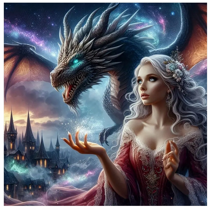 Предлагаем Вам уникальную алмазную вышивку размером 40х40 см с изображением волшебной картины «Девушка-Волшебница-Дракон». Это идеальный способ провести свободное время и создать потрясающее украшение, которое придаст интерьеру неповторимый характер.