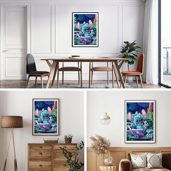 ✅На картине изображен милый персонаж "Стич"в окружении утят